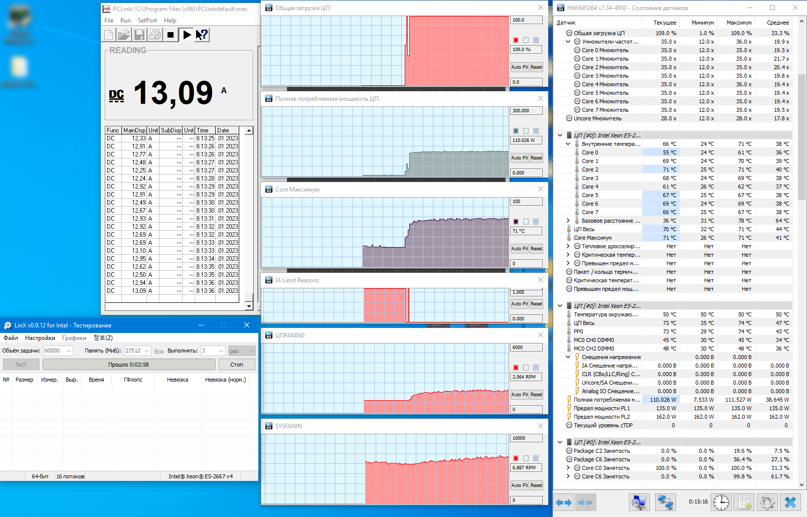 На Jginyue x99 d8 Server вроде бы датчики в порядке. 2683v4 в стресс-тестах показали ровно 120 Вт на ЦПУ. Утилита Intel PCM. 2667 до 135 Вт не гонял, работает и ладно.