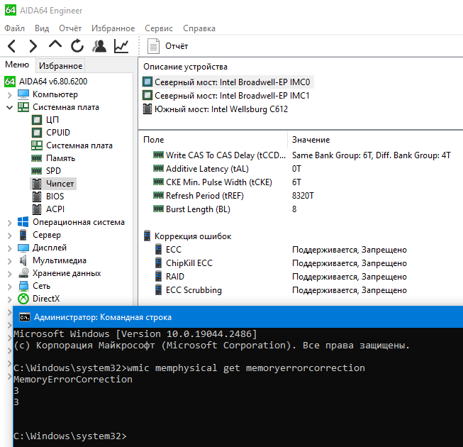 Проверка работы функции отключения ЕСС из биос. Материнка Huananzhi TF Gaming v3.0, биос с гитхаба 2020/05/25. IntelRCSetup > Memory Configuration > ECC Support = Auto / Disable