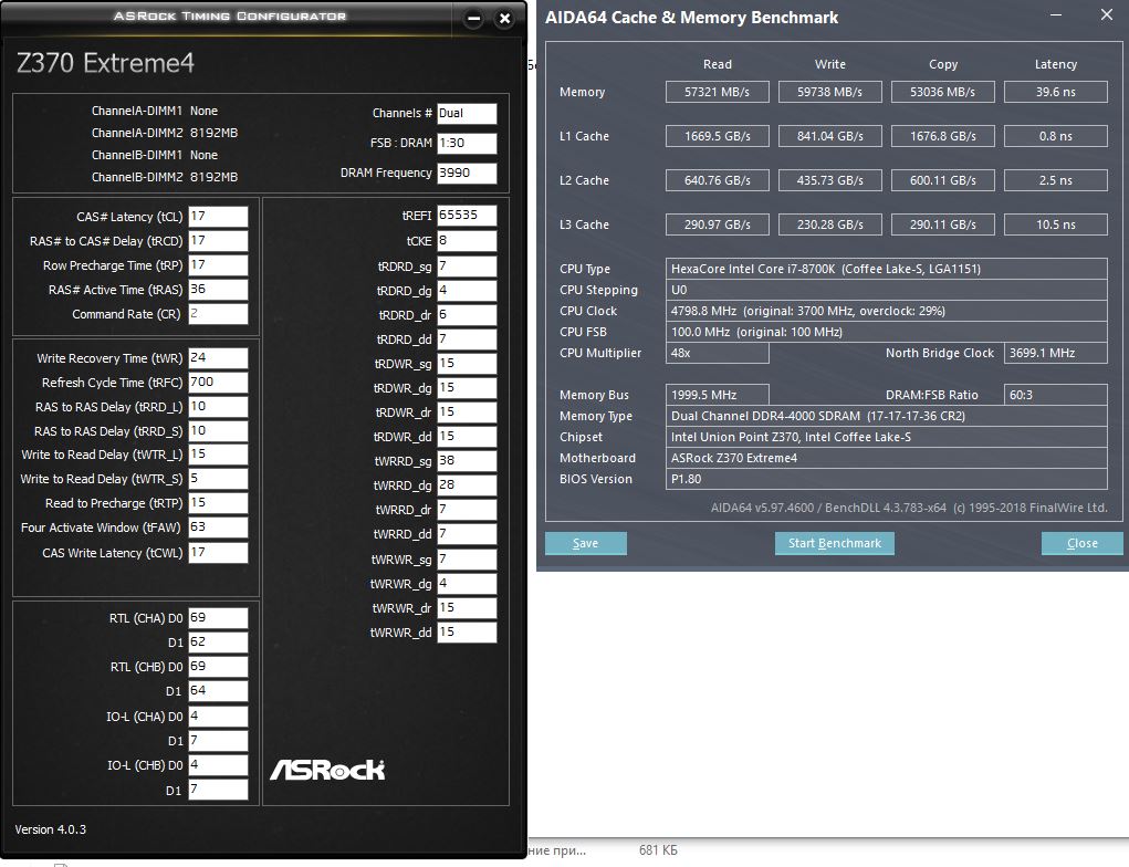 Добавлено спустя 45 минут 15 секунд: P.s. пробил возможный предел памяти по более менее адекватным таймингам - 4166mhz 17-18-18-37 tREFI 65535 В общем это предел мат платы) как пишут в инете всего 2-3 модели плат выпущено на Z370, на которых можно взять стабильные 4266 и выше