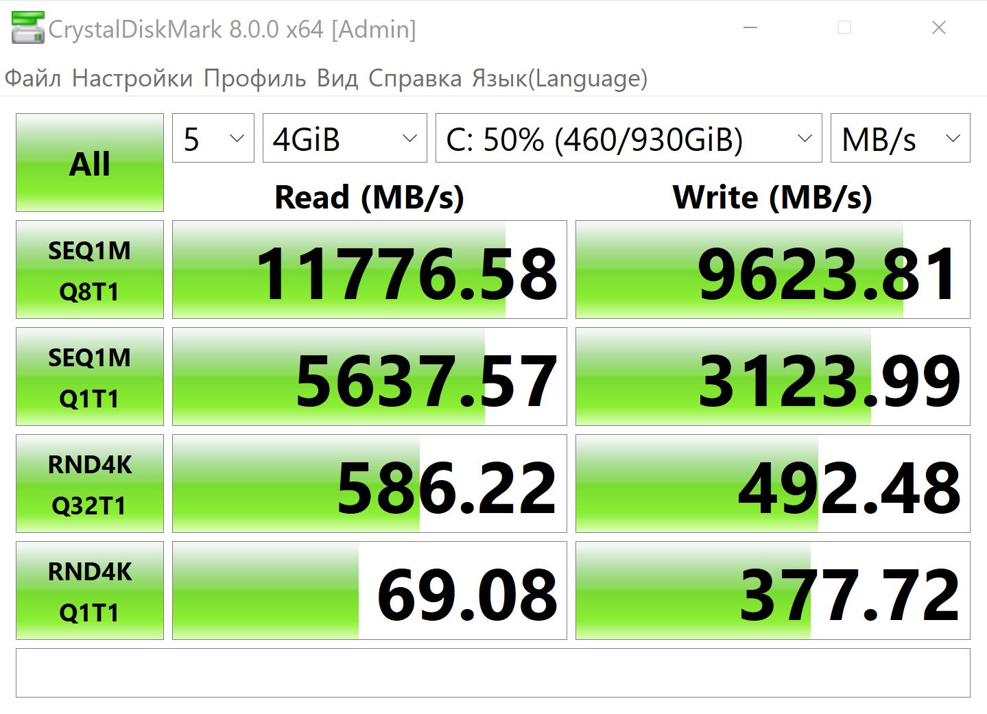 До 5,000MБ/с - это скорость записи в SLC-кэш, а после будет до 1000МБ/с. Плюс еще защита от перегрева, которая опускает производительность.