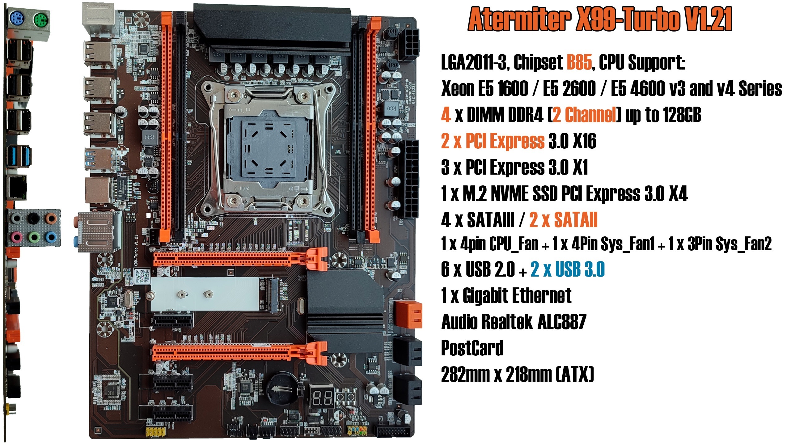 Внимание материнские платы x99-tf, x99-f8 и x99-t8 поддерживают работу только с m.2 nvme. M.2 SATA работать не будут!!! Также платы поддерживают m.2 wi-fi или стандартный pci-e wi-fi, ноутбучные mini pci-e будут работать только через соответствующий переходник!!!