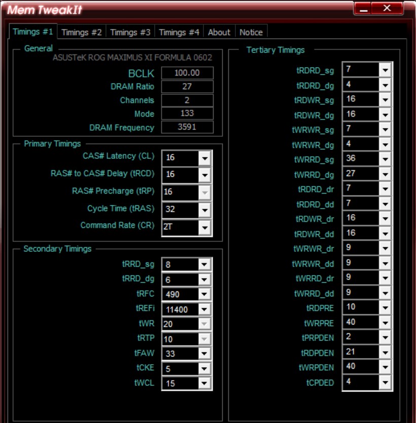 Можно снимок жостко забитых таймингов ветки RTL из вашего биоса ? А еще МемОК отключите Та еще дрянь, которая любит поганить рабочие тайминги при следующем запуске.