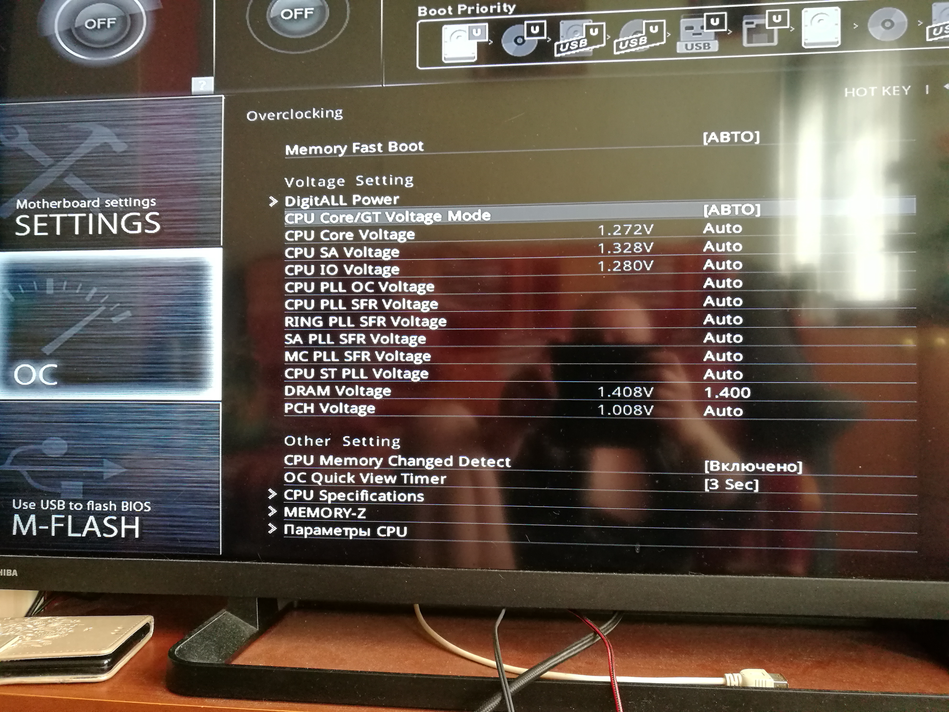 На MSI ещё PLL OC Voltage поковыряйте и при снижении этого вольтажа температуры проца понижаются. Я таким способом как минимум 5 градусов сбил. Снизил с дефолтных 1.200 до 1.170