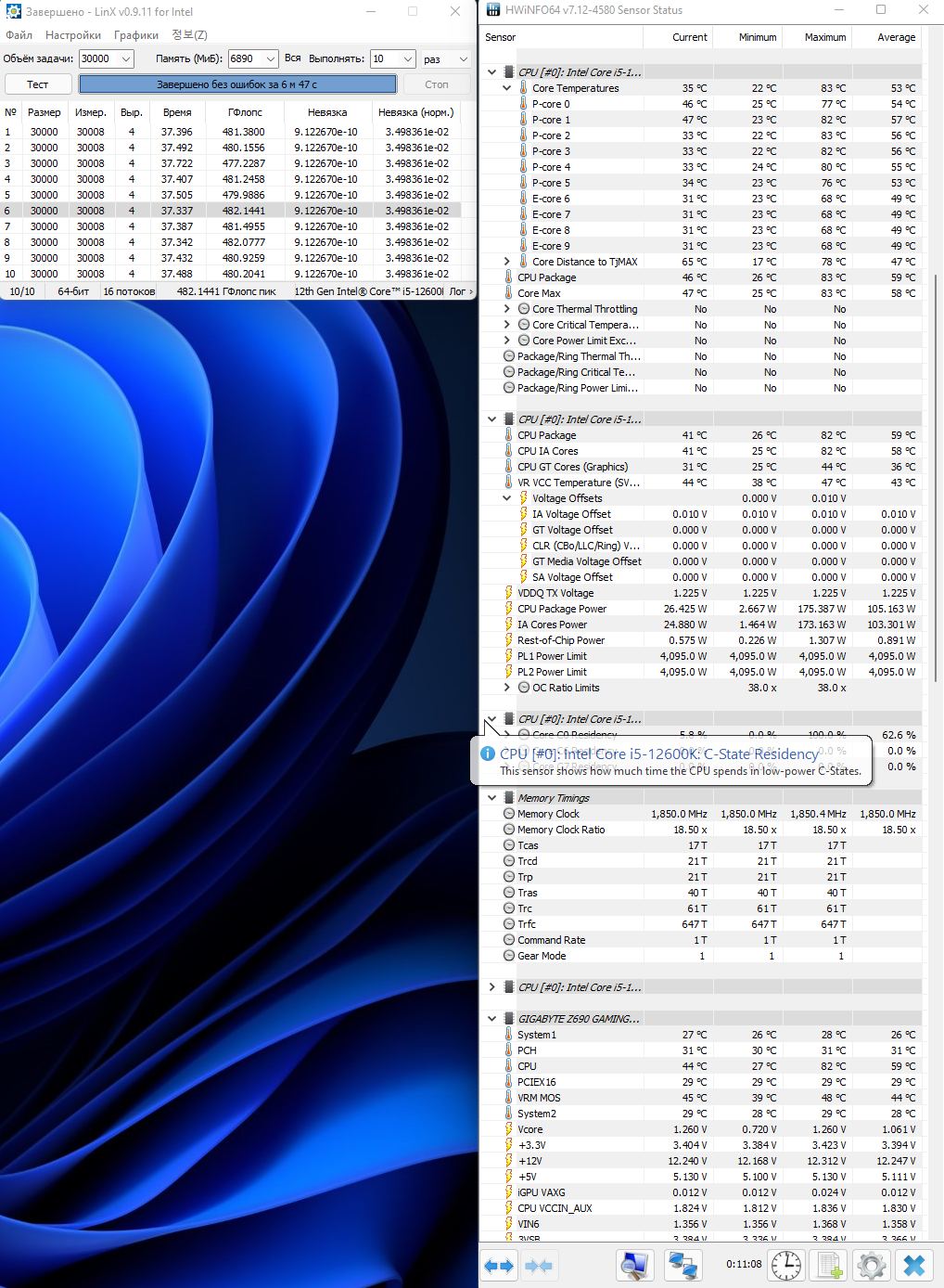 ailya1960 интерфейс биоса стал шустрее. Ещё возможно, немного помогло стабилизировать память на 3866 — снизил вольтаж до 1.47, вместо 1.48, прогнал пару часиков, всё стабильно. Но точно скажу только после ночного прогона.