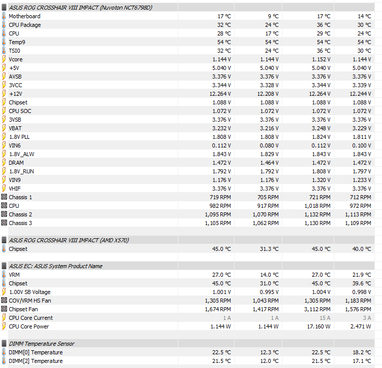 Парни, подскажите софт для мониторинга асуса. Глаза сломал, но не вижу напруги оперативки ни в HWiNFO, да вообще нигде на B450M-PRO S. Биос после мси такая шляпа, spread spectrum-а нет, llc на последнем уровне просаживается. На 2400G. Это просто позор какой-то для питальника 200А.