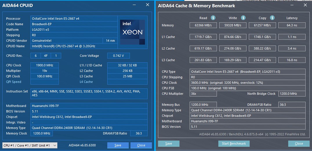 У меня же подружился 2690V4 с китайской десктопной памятью. )) И твои подружатся. Обнаружил я, что китайцы под видом серверной присылают, что угодно. Особенно, в комплектах. С RS9 пришли десктопные модули нонеймового происхождения. Обнаружил, когда поставил их на работу с 12700К. Он тоже дружит с серверной памятью (если дружит чипсет ), но ЕСС в таких случаях не работает. Одну пару поставил, вторую пару - работают. Присмотрелся, а там нет 9-й микросхемы. И каким боком они серверные? Другие не рассматривал, но погляжу. Китайцы шлют, чего хотят. Лишь бы работало. А чего ему не работать на каких-то там 2133 или 2400 МГц? Да легко!