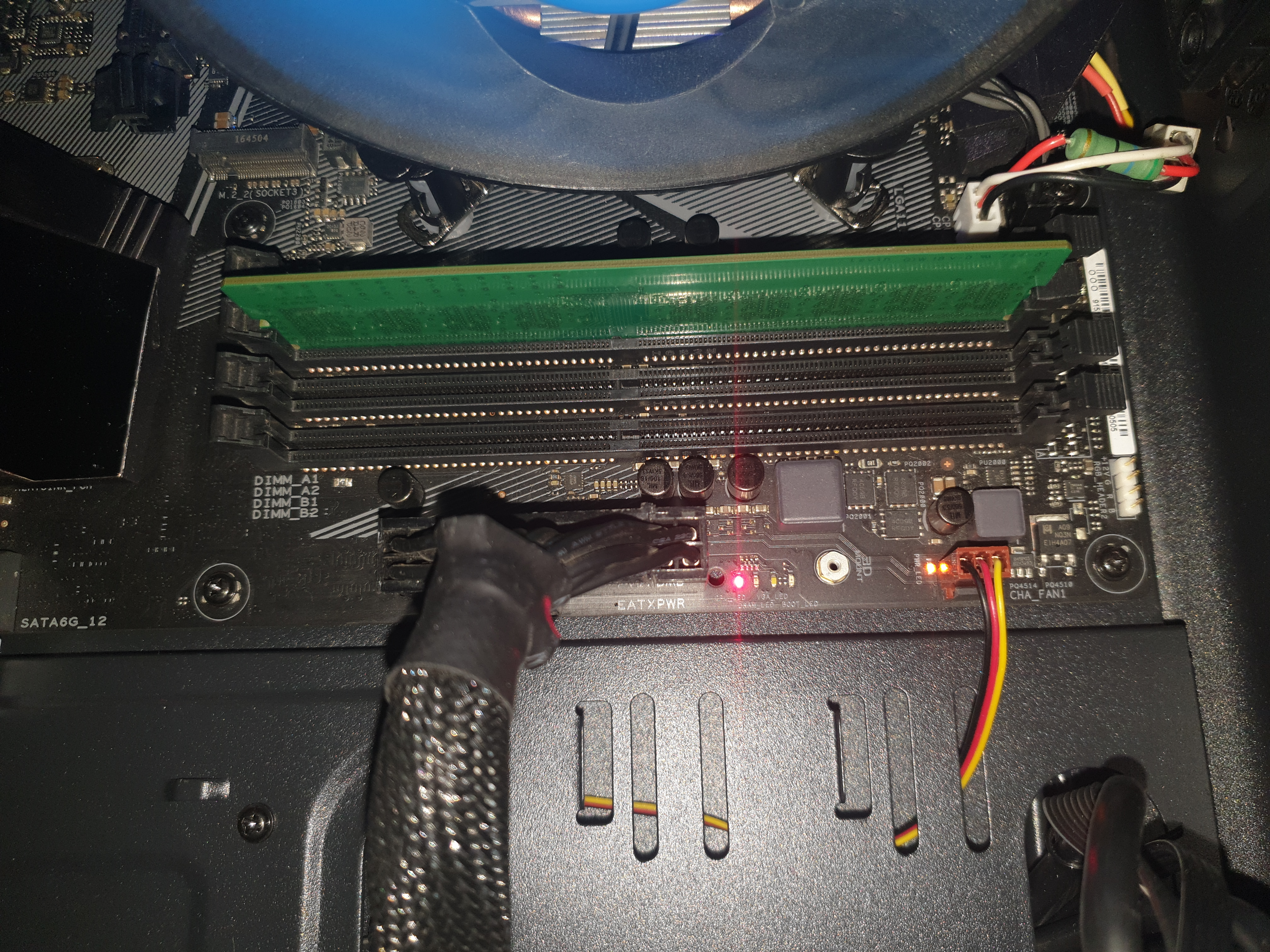 В том то и дело, что не работают А1, А2, в В1,В2 две планки работают, скачал родной биос, прогнал через кофетайм, прошил, теперь вставляя планку памяти в А1,А2 горит красный светодиод cpu, вставляю в В1,В2 все работает отлично, непойму куда копать!