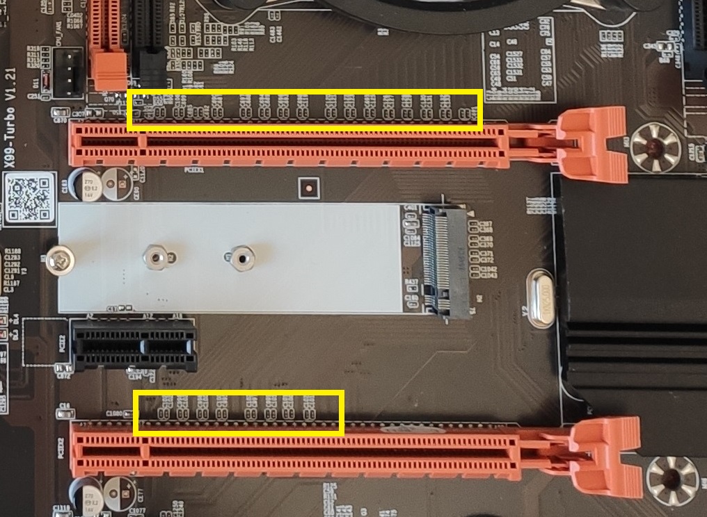 paragon Сравнить верхний и нижний pcie по количеству подходящих дорожек и по количеству пар smd-конденсаторов над разъемом. Китайцы могли развести всего 8 линий из 16.