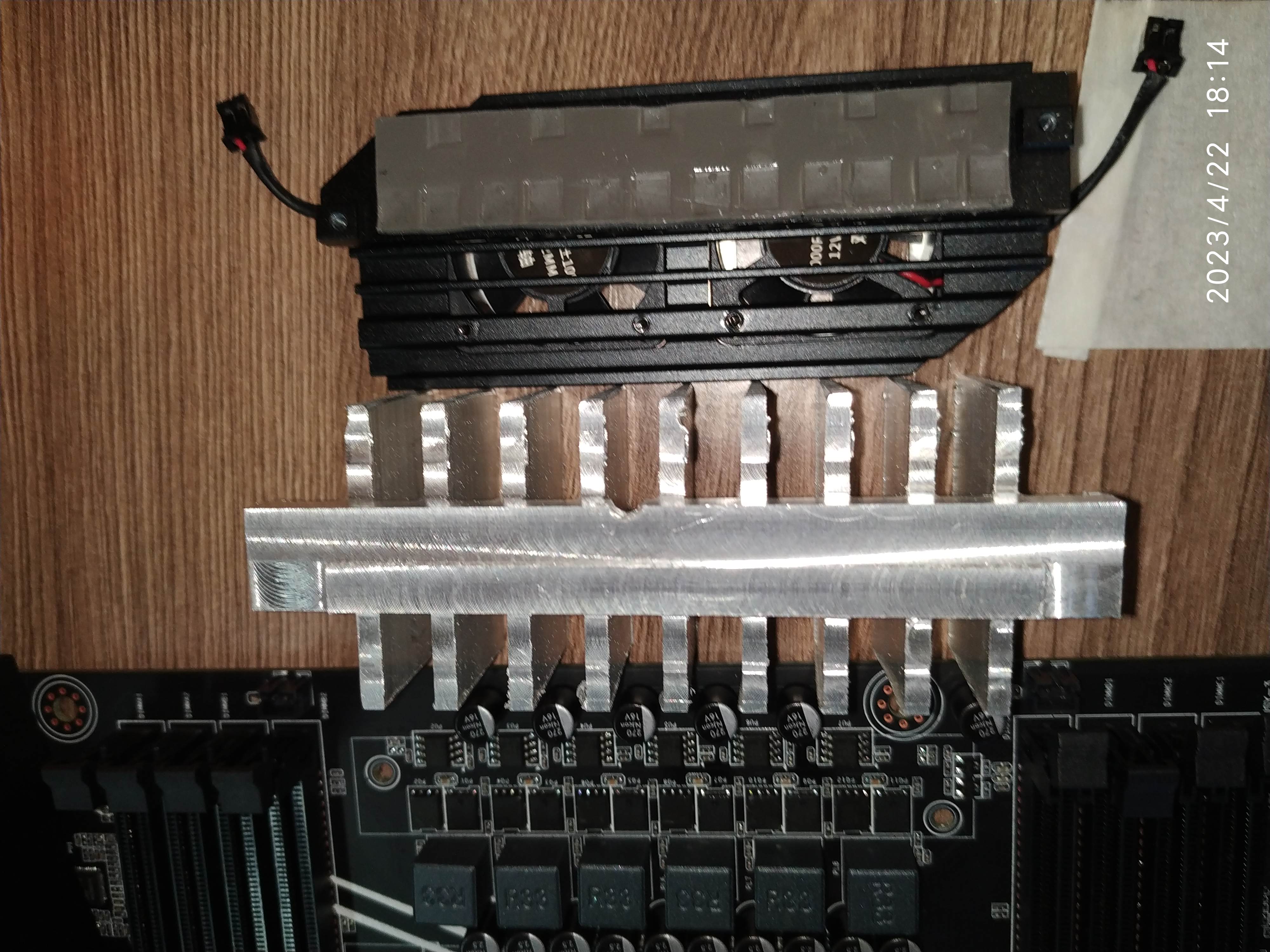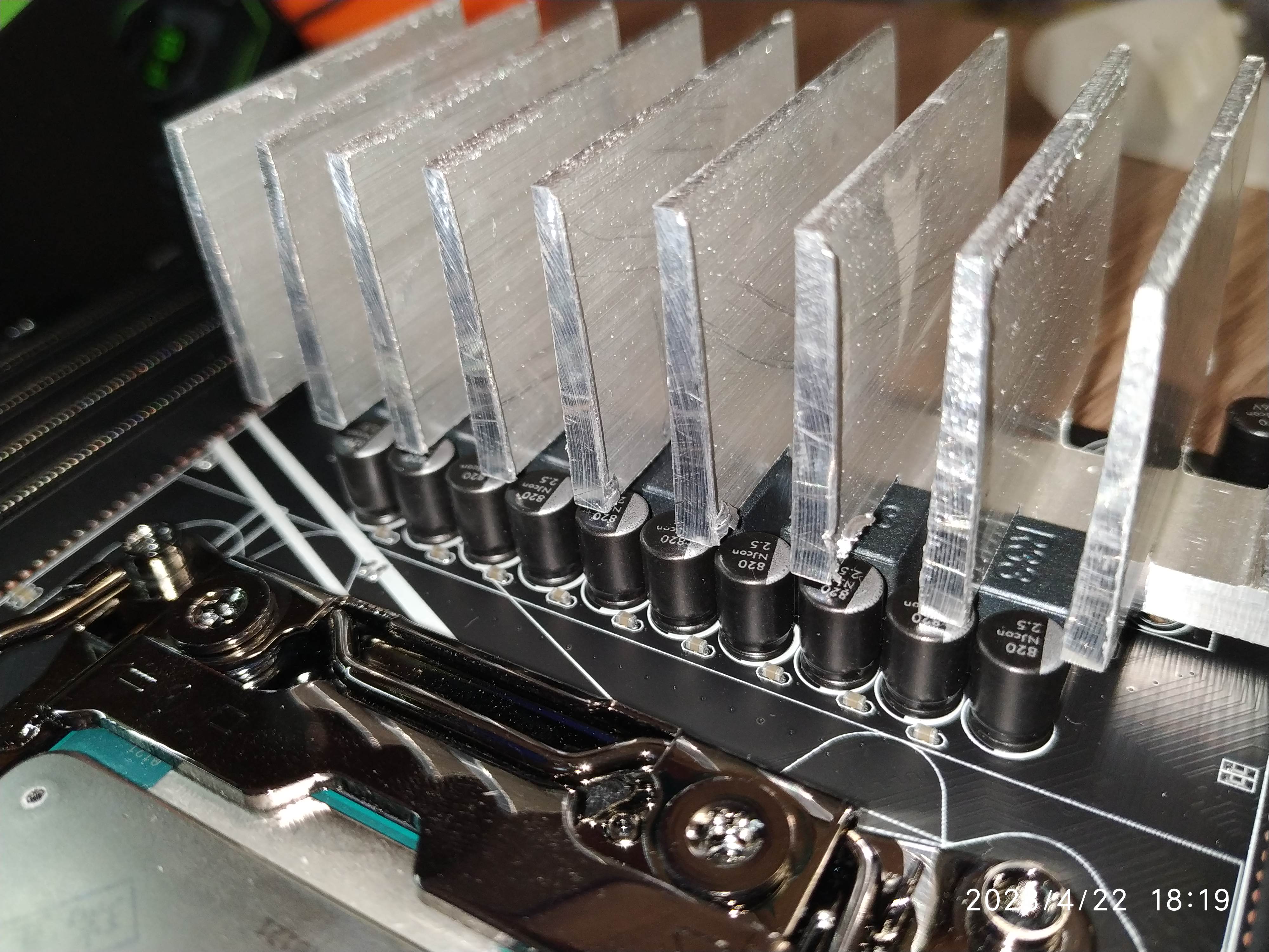 Добрался вкорячить на TF фрезерованный радиатор. Сделан из радиаторного профиля. Примерял по F8. По факту отверстия не совпадают на 1-2 мм. Подошву можно было сделать чуть шире. Радиатор холодный. Ставил на термопрокладку. Пруфов и замеров не будет. Юстированных термодатчиков нет. А то щас понесётся наброс на вентилятор... Вентиляторы с фирмовым радиатором пока на полку. Продувать должен вентилятор процессора. Но поскольку иногда эксперементирую - оставил турбину. Фото где-то в предыдущих сообщениях.