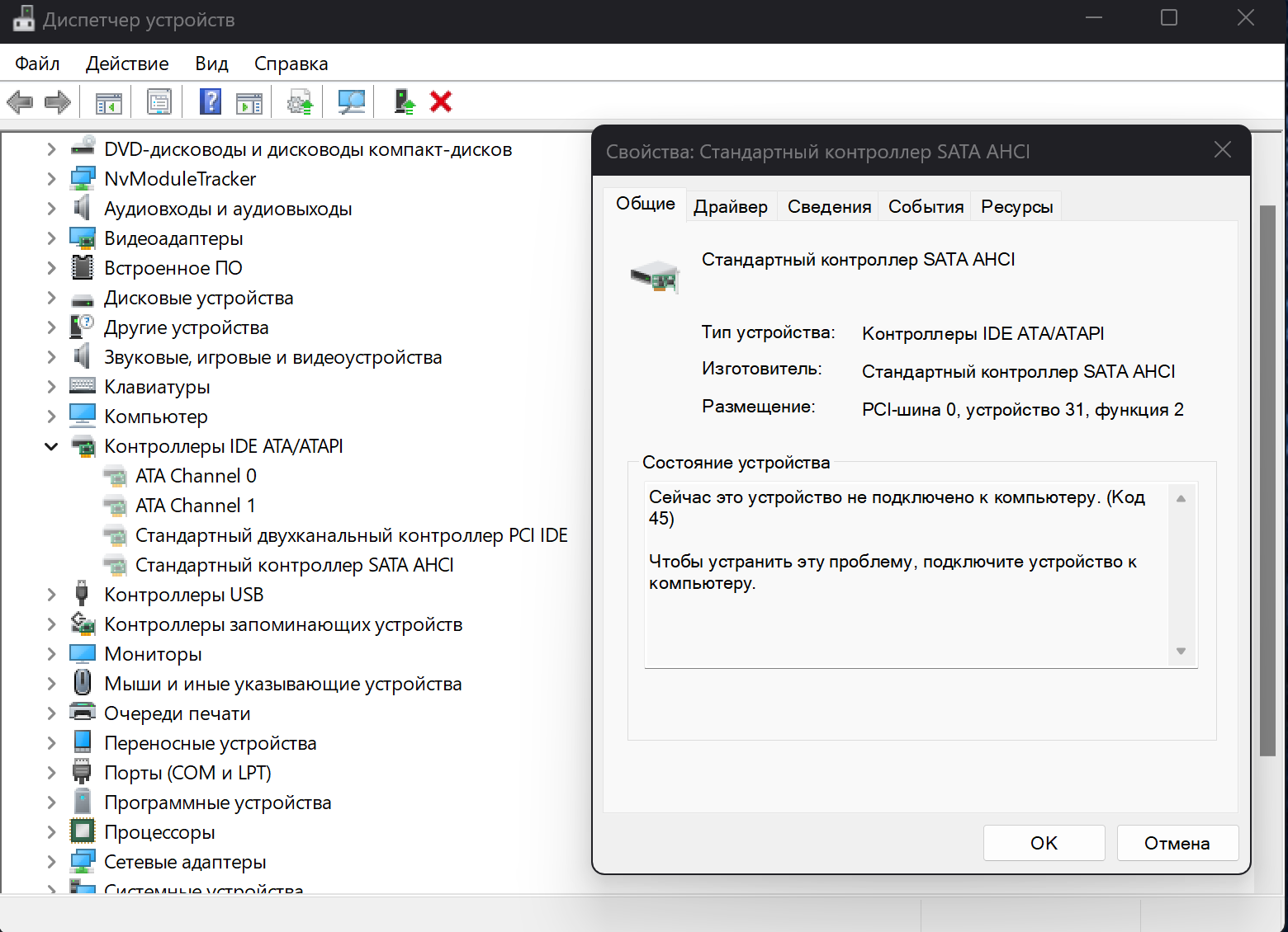 md5ERH И снова здравствуйте На плате 2 контроллера sata и ssata, по скриншоту один из контроллеров в режиме IDE. В биос надо переключить оба контроллера в режим AHCI. Если после этого диск не появится, то пробовать переподключить его в другой порт, их на плате 10 (6-sata/4-ssata).