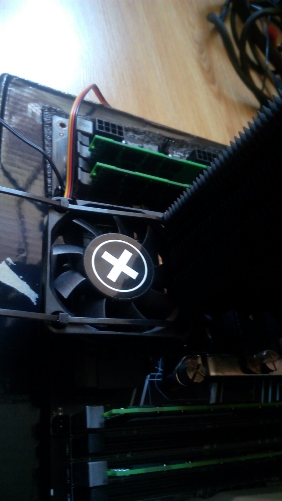 Добавлено спустя 1 час 7 минут 23 секунды: Теперь, что касается охлаждения VRM на X99-TF... Почитав форум решил выкинуть две штатные жужжалки и впихнуть вместо нее один вентилятор на 60... Выбрал Xilence XF032. Закрепил на пластиковые стяжки... Дополнительно поставил термопару от корпусного реобаса с дисплеем, что бы выдеть температуру VRM ну и регулировать обороты.. Желательно сразу, до установки, примерять все в корпус и с кулером... У меня все стало нормально...
