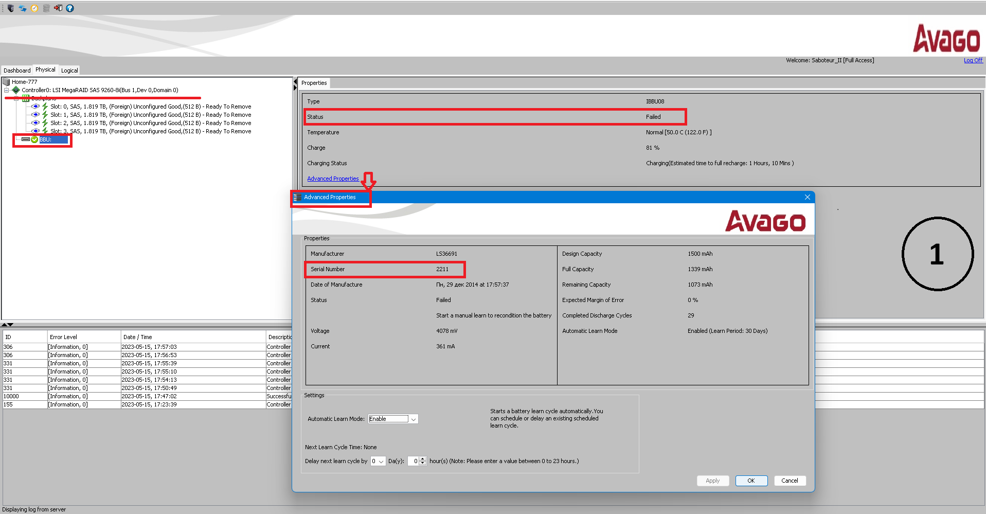 mt01, не нужно ключа. LSI брать 9260 и всё (старее не нужно). 0, 1, 5, 6 и 10 поддерживает. 2 и 4 террабайта диски видит и работает с ними. Батарею вот нужно, и её лучше заменить потом. Вчера спор у китайца выиграл. Контроллер ругался на батарею. Батарея оказалась рабочая. Контроллер рабочий. Денег из 3300, за контроллер с 2 sff кабелями и батареей, вернул 2400. Лучше брать от Супермикро, но оно 3800 без всего стоит самое дешёвое.