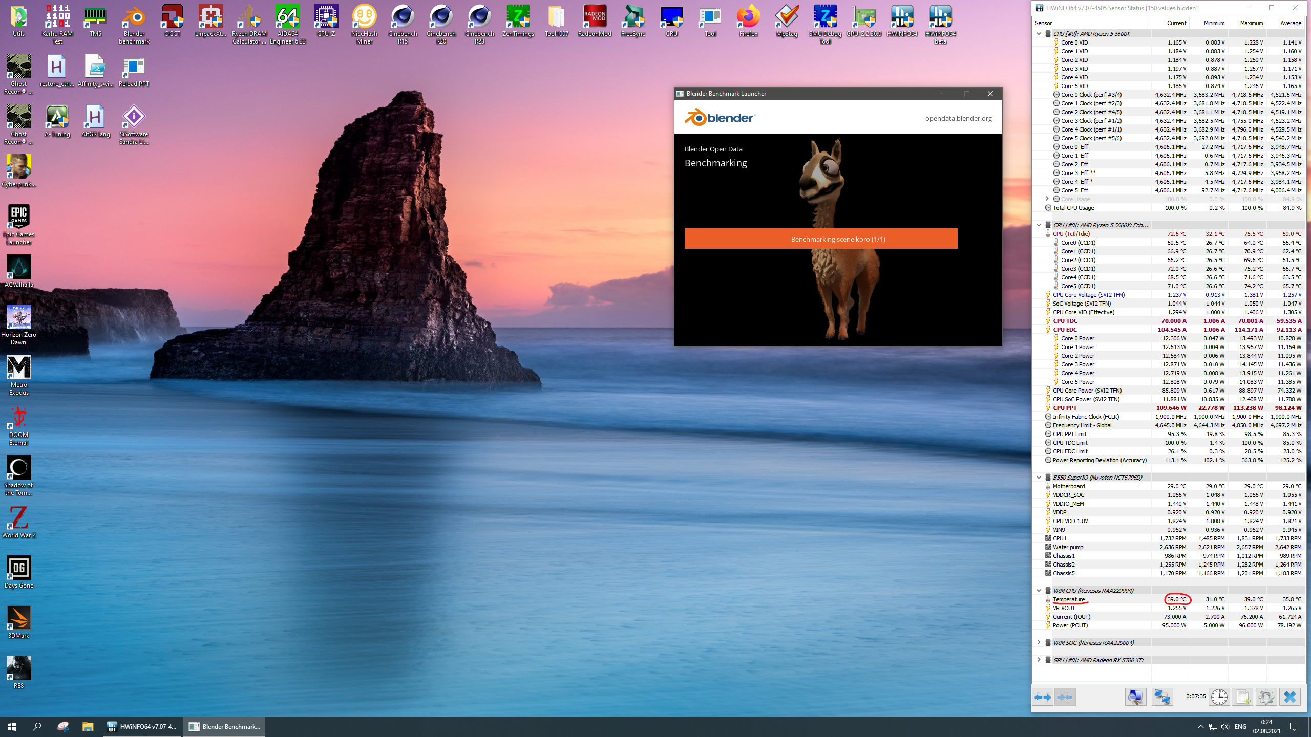 Разгон проца конечно суперский, но на показания температуры VRM я бы не опирался , явный бред - при разнице в потреблении 90W по POUT разница в температуре всего 8 градусов