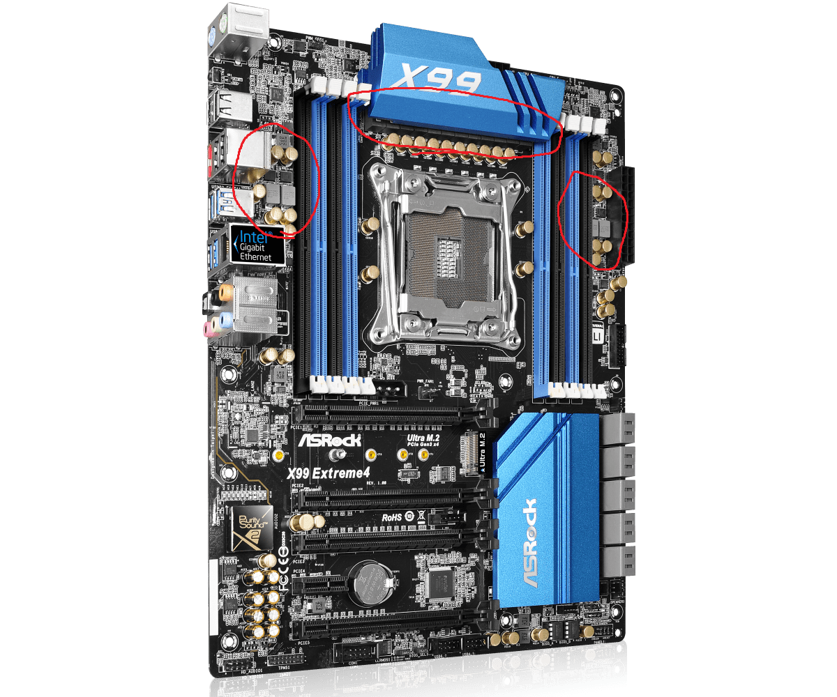 У Асрока их стопитцот разновидностей на сокет 2011-3 с разной компоновкой и соответственно расположением развязки. Это не ревизии, а по сути совершенно разные мамки. Нахрена их столько клепать, я не знаю. Там разных Экстримов только пачка, не говоря уже о других марках, не особо отличающихся. Даже есть с кулерами на врм, но думаю это для очковтирательства, по типу "мы тоже можем" в конкуренции с другими. Хотя может там такие же китайские утюги, то есть сэкономили