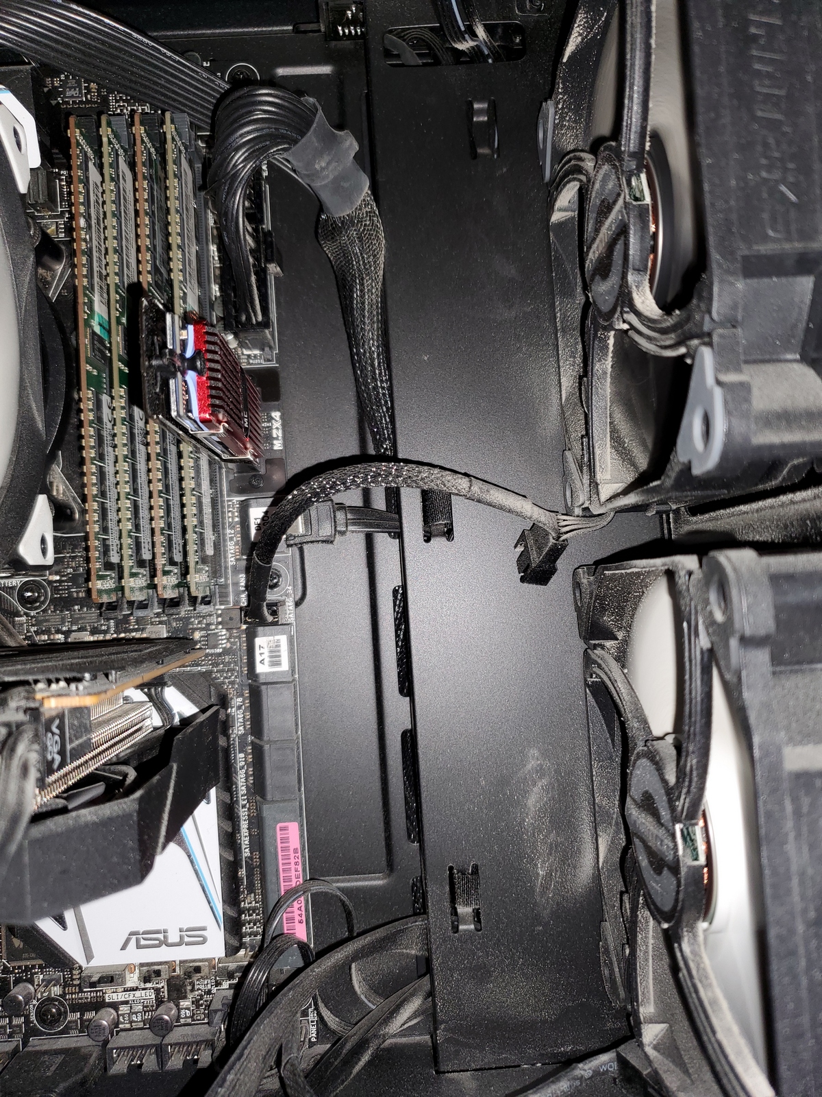 Нет, не перепутал. Там отдельные питальники. Ещё, так как у меня процессорного куллера нет, то есть обдува нормального зоны врм нет, кроме корпусной вентиляции, то приколхозил с радиатора врм термотрубку на водоблок процессора Ну так, для самоуспокоения, хоть он и не греется даже, хотя возможно греть буду, когда наконец доедет мой 2696