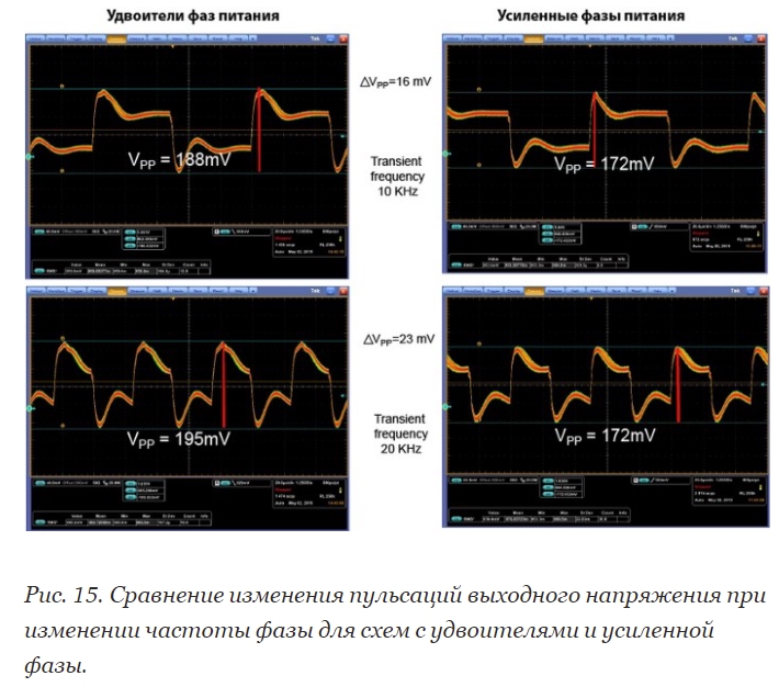 Это даже не главный минус, в конце концов предварительно можно вдвое увеличить частоту управляющих сигналов контроллера (хотя это и не "бесплатно"). Главное, на мой взгляд, задержки на линии сигналов. Т.к. любая промежуточная обработка сигнала неминуемо вносит в него задержку, это относится и к даблерам. В итоге, в схеме с даблерами изменение частоты PWM-импульсов (все PWM-контроллеры имеют рабочий диапазон частоты, которая меняется в зависимости от нагрузки) приводит к увеличению выходной пульсации напряжения из-за задержки управления. В схеме с усиленной фазой такого эффекта не наблюдается.