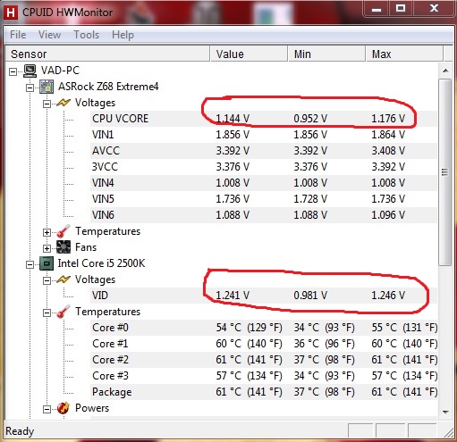 Вот прогнал немного в линксе сделал скрин напряжения, я в этом деле профан, поэтому возможно не совсем правильно вас понял, укажите где конкретно посмотреть значения hwmonitor и я сделаю нужные скриншоты. А пока что -