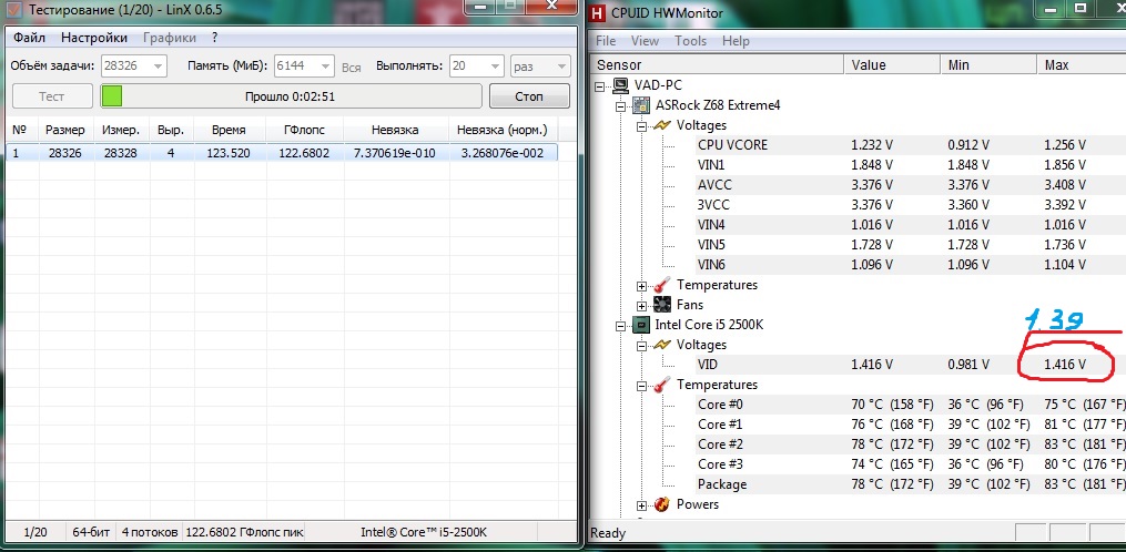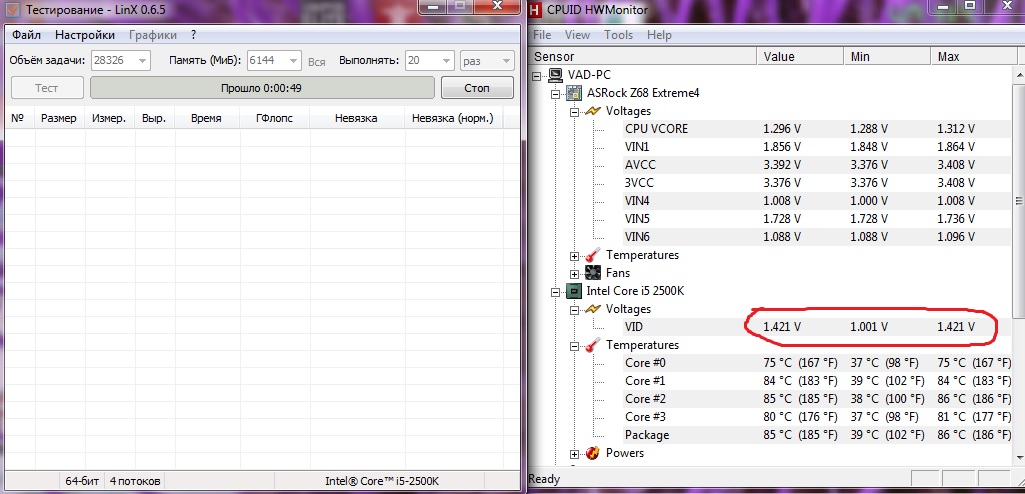 очень интересно и скоко ж у тя вольтаж в макс напруге и скоко подается на vid, если можешь сделай скрин hwmonitor в linx. Спасибо.