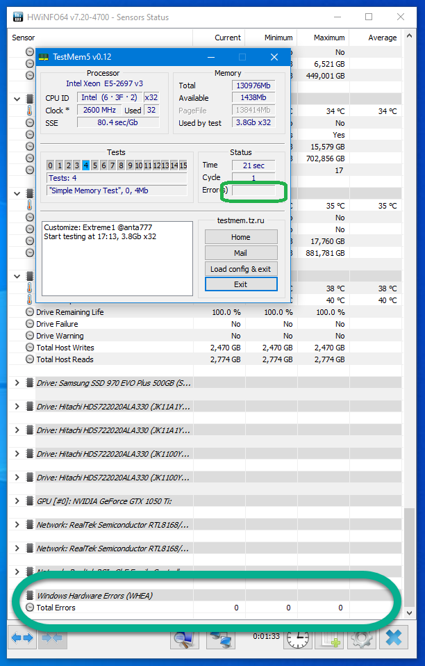 Всем присутствующим доброго времени суток. Такая вот возникла кауза: проапгрейдил я процессор с 2620v3 на 1650v4 решив что +30% производительности за 2500 рублей - хорошая сделка. Процессор заработал, ожидаемо показал прибавку в сотню попугаев по однопоточному бенчмарку CPU-Z, но винда стала крашиться, ну думаю дело в андервольте - прошил биос от "Кошака" без оного. Вроде всё стало ровно, кстати проц совсем не горячий и до номинальных 150Вт потребления дотянется разве что если все ядра на 100% загрузить AVX инструкциями, в обычном стресс-тесте со стареньким номинально 100-ваттным трёхтрубочным кулером греется до 65 градусов при 60% оборотов вентилятора, примерно как андервольтнутый 2620v3 до него. Но на всякий случай для обдува VRM прицепил сбоку к переходнику крепления кулера на скрепки 70мм 4-пиновый вентилятор от древнего боксового кулера AMD, запитал через разветвитель чтобы крутился синхронно процессорному. В общем работало всё нормально, но на следующий день с утра винда опять стала крашиться. Прикинув что ещё могло измениться вспомнил про повышение частоты памяти с 1866 до 2400МГц, в биосе поставил частоту 2133 - краши прекратились. Память какая-то Klisre 8-гиговая на 2400, в SPD написано что на чипах Mikron, тайминги вроде не экстремальные. Может кто чего подскажет - это память такая или надо что-то в настройках биоса покрутить?