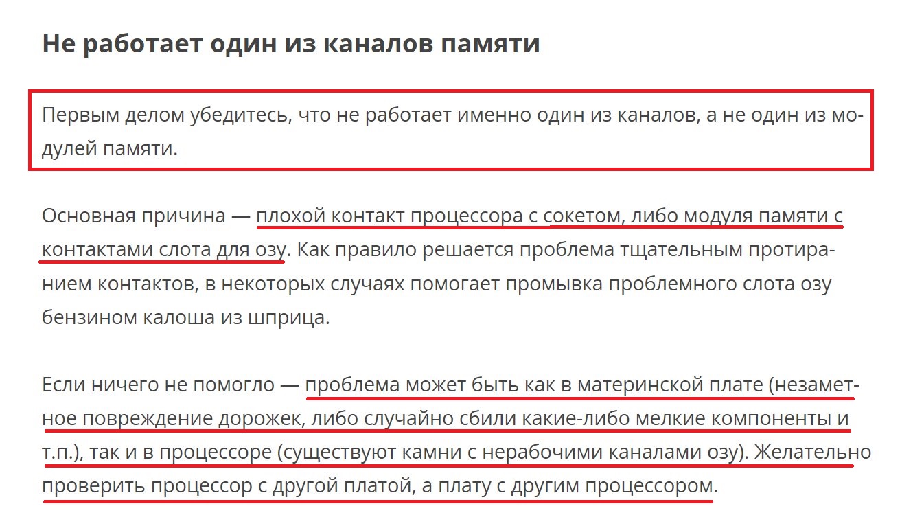 Флирт & Qvak, вы чего советуете человеку. Вначале заполняются дальние слоты от проца на каждый канал (может быть не по одному слоту, но и два (как тут), так и 3), а потом уже ближние. alcom12, у вас именно конкретная планка памяти не хочет работать или без разницы какая, но в одном, конкретно взятом, слоте? У вас все 4 палки одинаковые? Сокет и слот осмотрите. Может ноги и/или контакты погнули. Процу с палками спиртовую ванную устройте (предварительно натерев стёркой).