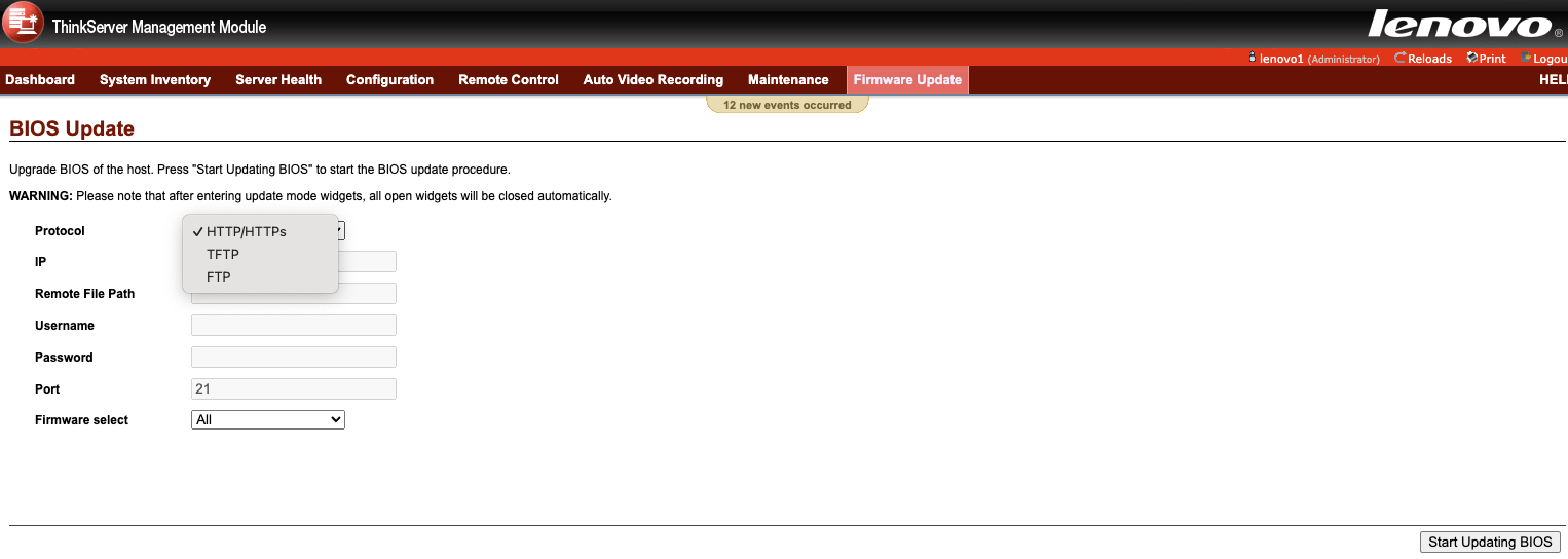 Можете, пожалуйста, написать процедуру его бекапа и потом обновления? В BMC есть такой раздел по обновлению BIOS, но нет такого чтобы сохранить дамп и обновление только через сеть.