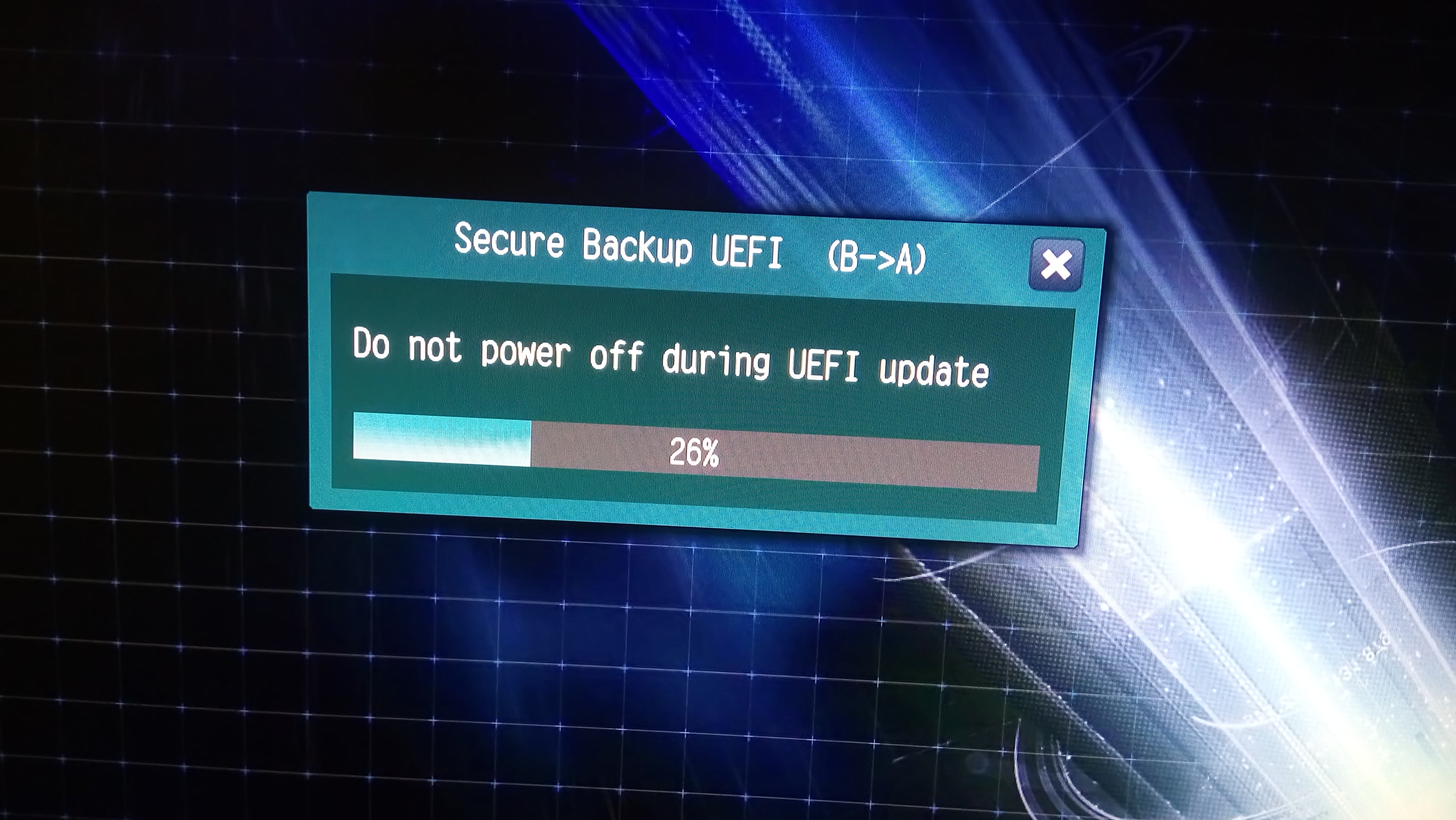 Я вообще думал что этот второй биос специально сделан на такие случай получается от него толку вообще нет, в сам биос не зайти, что он там опгреидит не понятно, причём и с шлешкой и без загрузка доходит до ста процентов и все, комп все равно не включается