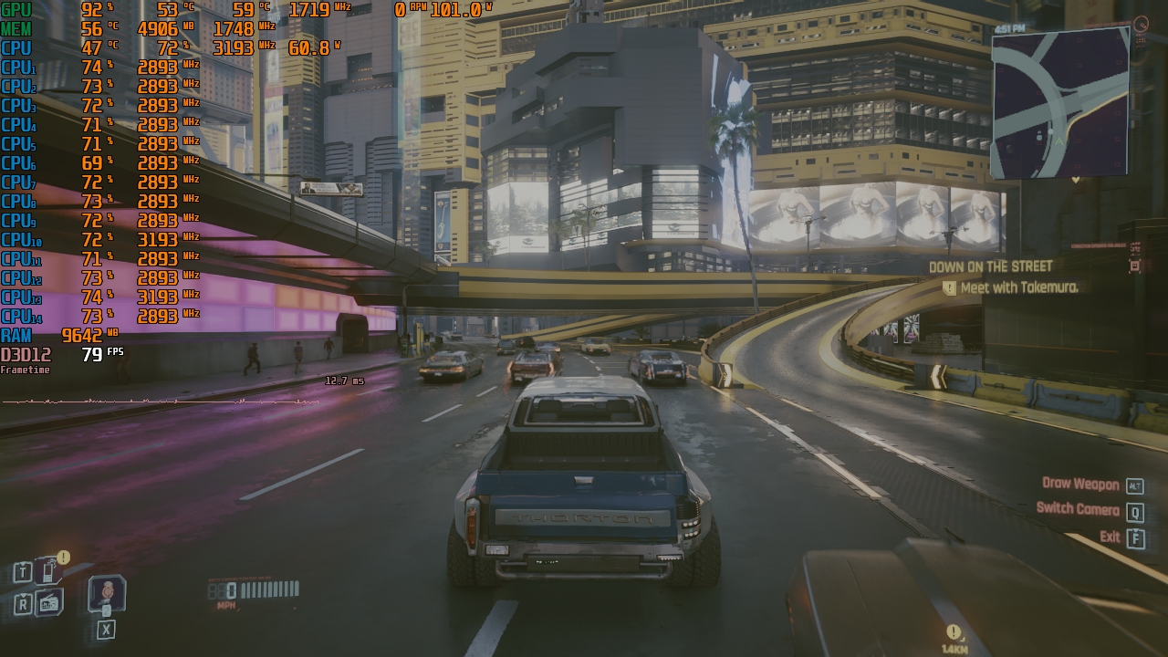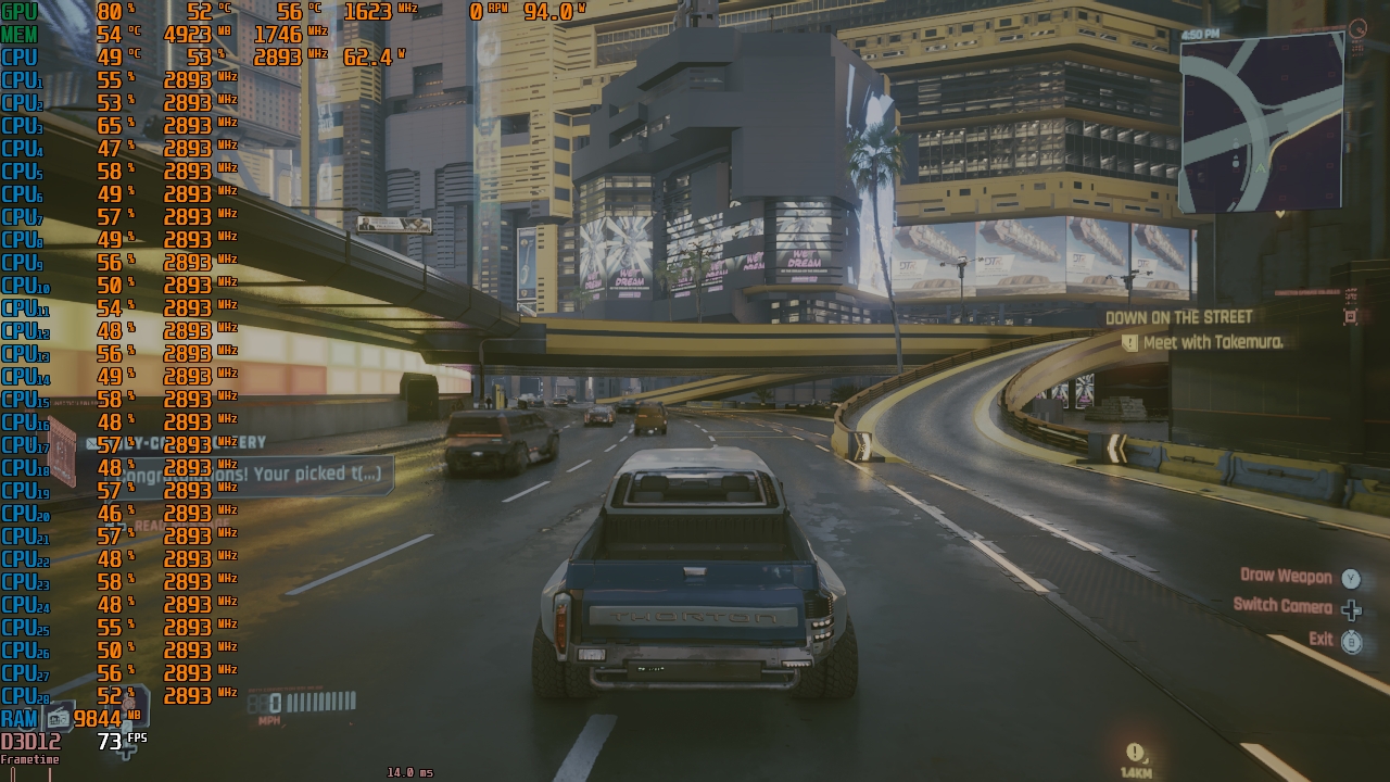 Долбится в сотку в киберпанке, когда много NPC на экране, FPS до 60 падает, а мне надо чтобы не ниже 75 держал.