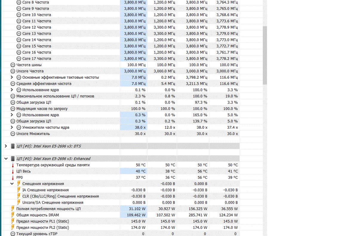 Для разгона множитилем как правило достаточно настроек стокового биоса, но в любом случае не прошивайте биосы предназначеные для анлока турбобуста процессров с заблокированым множителем, типа"с повышенным повер-лимитом и открытыми дополнительными настройками QPI". Для плат Huananzhi и других, использующих схожий биос, нужные настройки находятся в меню IntelRCSetup > Overclocking Feature > Processor и IntelRCSetup > Overclocking Feature > CLR\Ring. Основные параметры: Core Max OC Ratio — множитель ядер. Для Xeon E5 1650 v3 можно сразу установить 41-42. Core Voltage Mode — можно выбрать динамически (Adaptive) повышать напряжение или сделать статическим Core Voltage Override — выставляем напряжение на процессор в милливольтах, к примеру 1250, это будет 1.25 вольта (начать можно как раз с этого значения). Выше 1.30 поднимать с осторожностью! CLR Max OC Ratio — множитель контроллера памяти. По умолчанию равен 30, можно плавно повышать до 33-35 и тестировать производительность и стабильность. Core Voltage Mode — напряжение контроллера памяти. Аналогично Core Voltage Mode, но не выше 1250. Процессоры Haswell очень чувствительны к напряжению контроллера памяти, более-менее оптимальным считается 1.25 вольта, поднимать выше стоит с особой осторожностью.