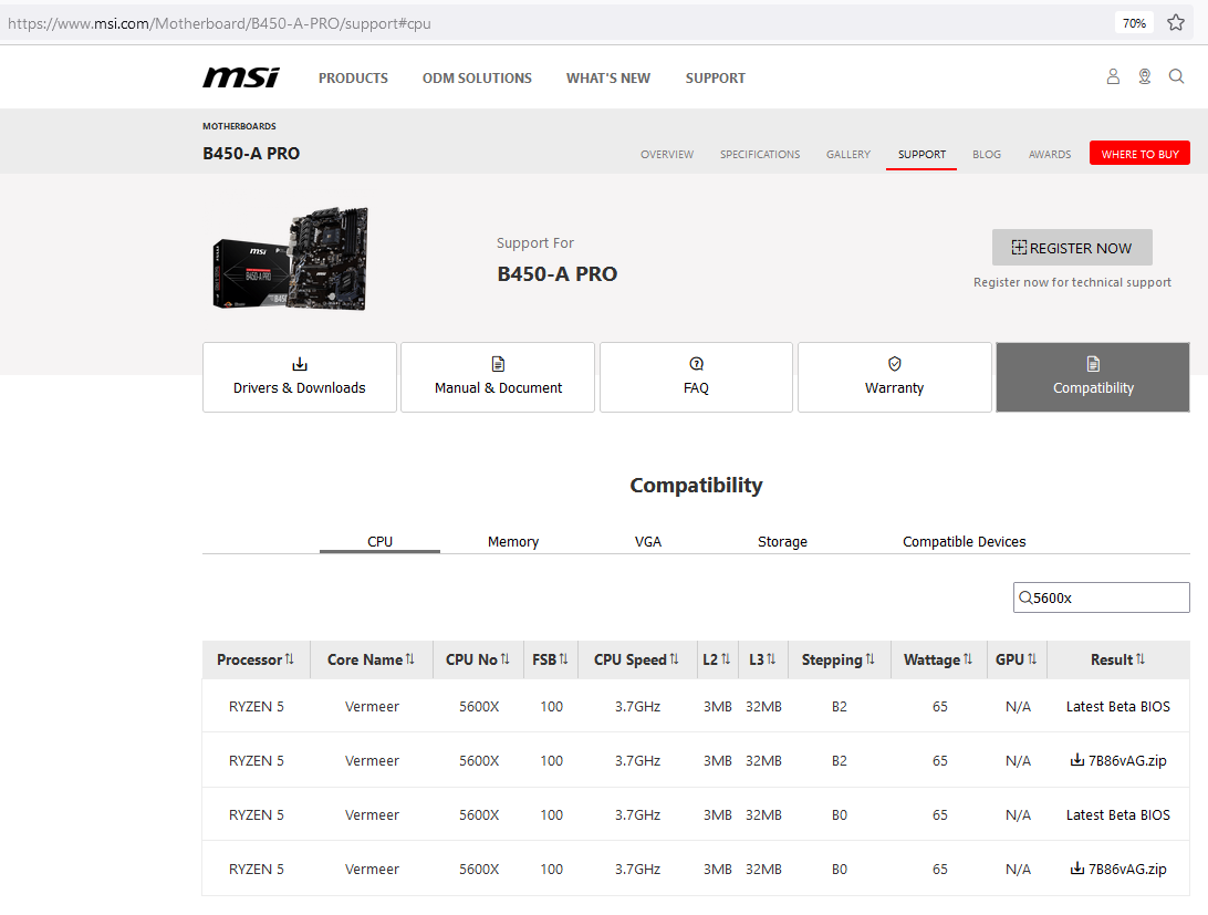 Купил сейчас 5600x поставил в материнку MSI B450-a PRO предварительно обновив биос до последнего. И не работает! Это какой то прикол от MSI? Оказалось именно для этой материнки нет биоса для 5000 серии. Хотя для B450-a PRO MAX такой биос есть. И что теперь делать? https://www.msi.com/Motherboard/B450-A-PRO/support