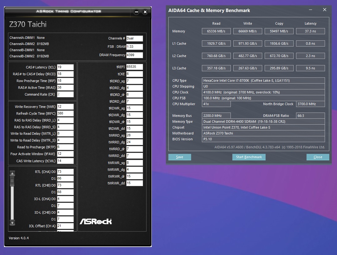 Ну таичи завышает , так что фактически это 1.45В. У меня на этих таймингах даже не пускает 4400 , зато пускает на них же 4500 кек , но с ошибками.