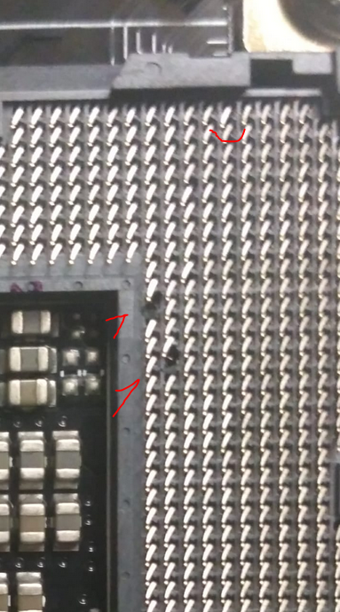 хз как тут фото прикреплять, есть фото модификации сокета и перемычка на массу для определения проца asus z170iPG, процессор модить не стал, да и нечем. кстати, какая зависимость ухода процессоров на матерях асус выше по питанию? на глаз на авто 8400 у меня совсем не греется и напряжения в меню биоса норм. галочками на фото пометил оторваные лапки а скобкой погнутую лапу которую непонятно как согнул)