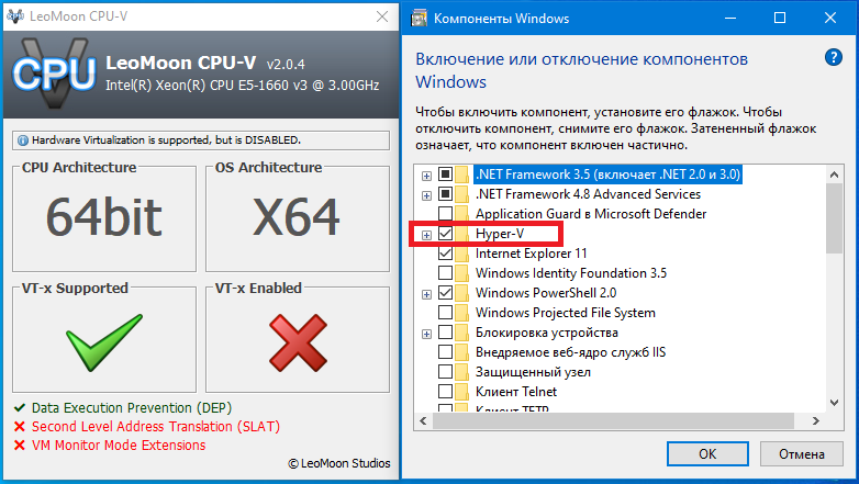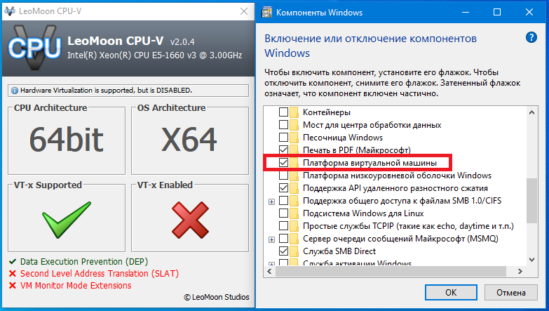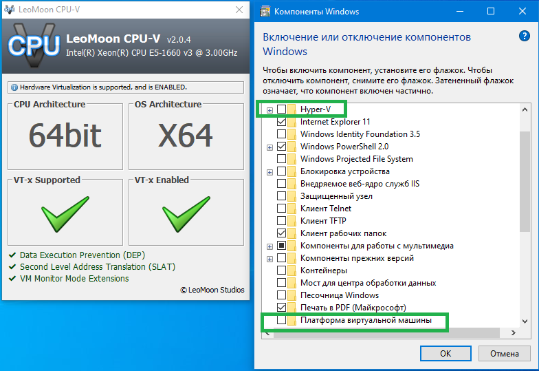 Появление "звездочки" в coreinfo тоже зависит от настроек (включенных компонентов) в win.
