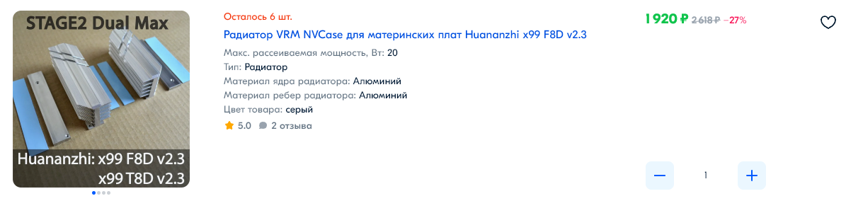 2.VEugene Продаю комплект вот такой: https://aliexpress.ru/item/100500314818 ... 1667062299 Только камни 2666 v3 Состав: HUANANZHI X99-F8D LGA2011-3 Xeon E5 2666 v3 - 2 шт. Кулера для CPU - 2 шт. 8G DDR4 2133 REG ECC память - 2 шт. 128G M.2 NVMe SSD (китайский) - 1 шт. Комплект был запасной, куплен целиком мной лично, заменены в нем только камни (изначально были 2690 v3) Все проверено, запускается. Цена 22000 руб. В Москве.