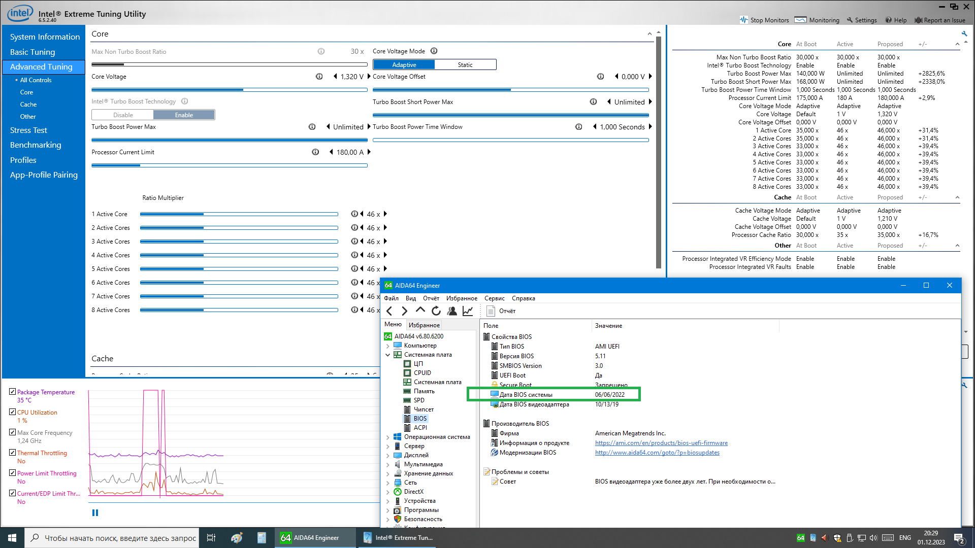Если NEXO опасается прошивать, то один из способов, не требующих прошивки, это использование IntelXTU или прочих подобных программ. На штатном биосе при использовании XTU нужной версии разгон работает, на скрине выше я это проверил. Устроит родной биос 06-06-2022 и подобный способ разгона, пусть на нем и остается. Захочет что-то поменять- пусть шьет майский 2020 года. 99,9% что тот, на который я дал ссылку заведется.