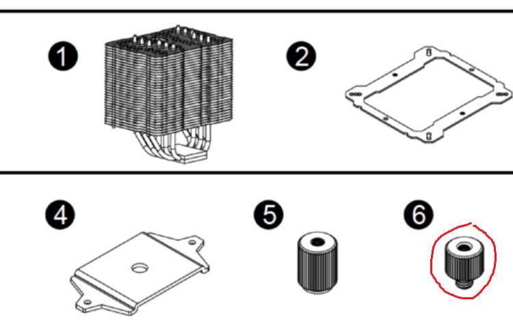 Добрый день! Подскажите, столкнулся с такой ситуацией. Есть у меня кулер Thermalright Macho Rev.A (https://www.dns-shop.ru/product/4adc74d ... teristics/) Однако болтики под 2011-3 утеряны (склорее всего куда-то очень надежно убраны). Фото болтов приркладываю. Никак не могу их отдельно найти в продаже.