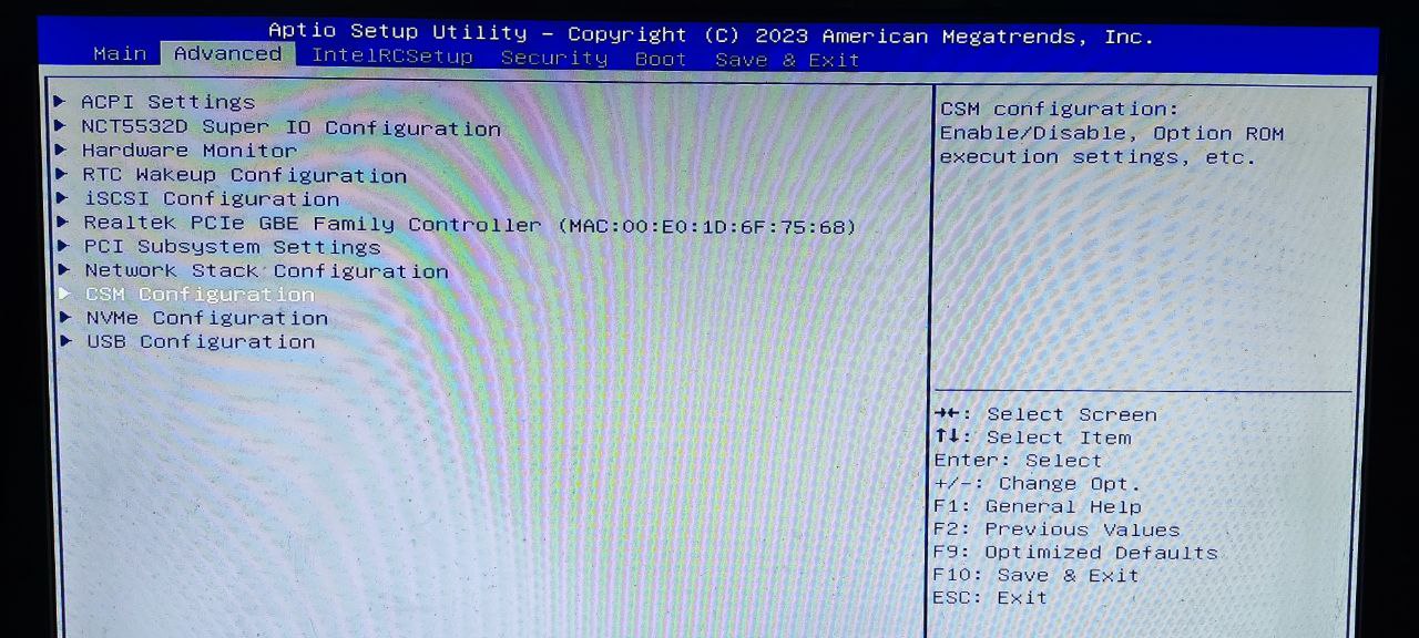 Внизу биоса надпись: Version 2.17.1249. Copyright (C) 2023 American Megatrends, Inc.
