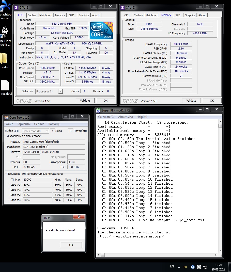 Золотые слова. Я тоже не верю. Но факт... UCLK частота и QPI link rate - пробовалось, банан... Кстати память на 1.5в родных - зачем ей больше если она выровнена близко к своим родным частотам (чуток до них) и на родных же таймингах??? Для чего? Или это из разряда *авось*...