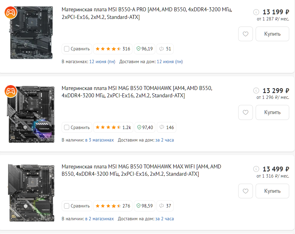 MSI B550-A PRO на обычных мосфетах на 300 рэ дешевле B550 TOMAHAWK MAX WIFI, который на 75А dr-mos, по питальнику просто не сравнимые платы. И на 100 рэ дешевле стандартного томагавка, который на 60А dr-mos. На озоне B550-A PRO дешевле чем в трех буквах, но сам бы к 5800x3d из b550 взял TOMAHAWK MAX WIFI. А вообще, при существовании GIGABYTE X570S UD за 13.3к на "казахском" озоне выбор очевиден для всего, что выше 5600х.