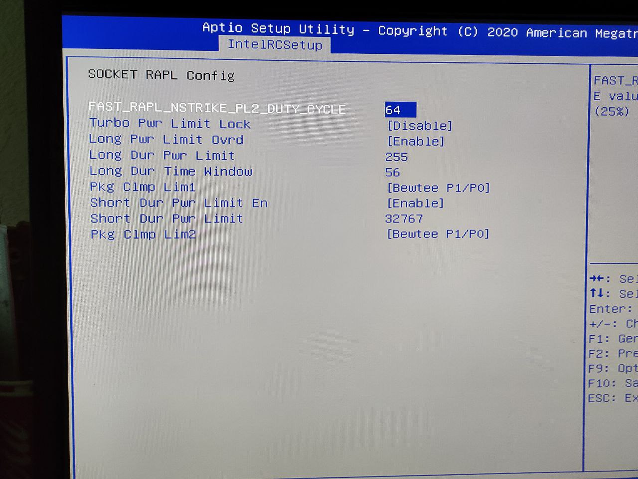Long Dur Pwr Limit сменил на 255, Long Dur Time Window сменил на 56, стало 3,1 по всем ядрам, периодически опускается до 3,0.