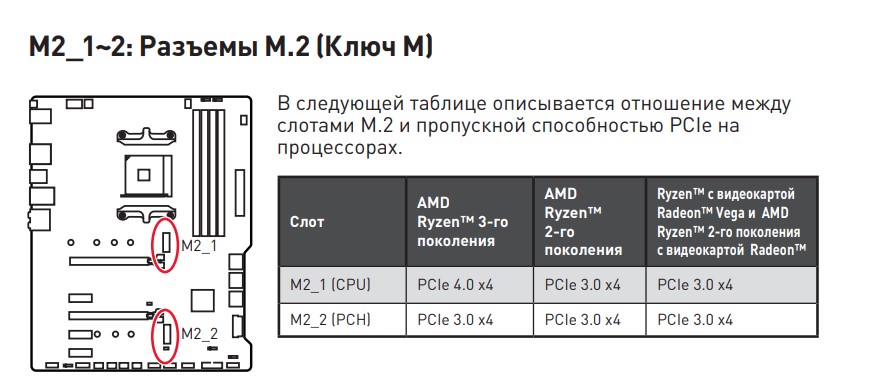 29-я в мануале по вашей ссылке - распределение линий PCI-Ex. И да - не зря я вам привёл "Х570 структуру" - у данного чипсета НЕТ 3.0 выходных линий вообще. Только 4.0! Все 4.0. Если у вас пишет 3.0 - либо это через "распределеитель" сделано(отдельная микросхема), либо МСИ накрутили с драйверами - пробуйте обновить на свежие. К слову - наличие ВСЕХ выходных 4.0 отличает данный чипсет(Х570) от более дешевого В550, который имеет на выходе как раз 3.0. К слову о птичках - вот так выглядит "распределение" М.2 слотов на материнке Х570 УД от гиги: #77 В отличии от МСИ Гига следит за своими мануалами и вовремя правит их с выходом новых процов.