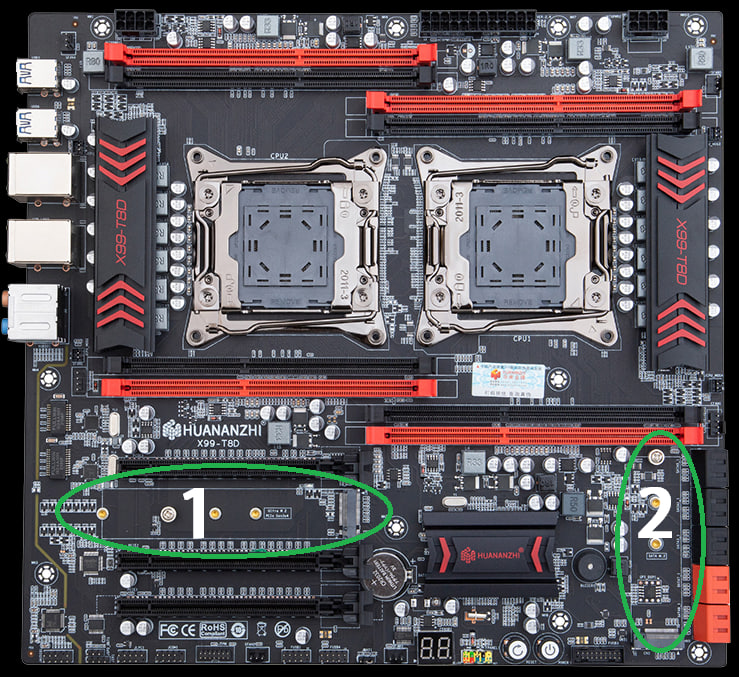 У меня тут комплектующие лежали всё никак руки не доходили. Начал собирать, и обнаружил, что в слоте №1 (m2 gen3 NVME) отмеченный на картинке не видит диск NVME вообще ни в биосе, ни в винде 10. Подключаю этот диск в разъём m2 sata NGFF (№2) и он определяется и при тесте там совсем не sata скорости (хотя подписано на плате sata m2). Как теперь возродить слот №1 хз. Bios сток от 21 года. На сайте huananzhi видел bios от 22 года, думаю может обновить и случиться чудо... Кто-то сталкивался с похожим поведением системы?