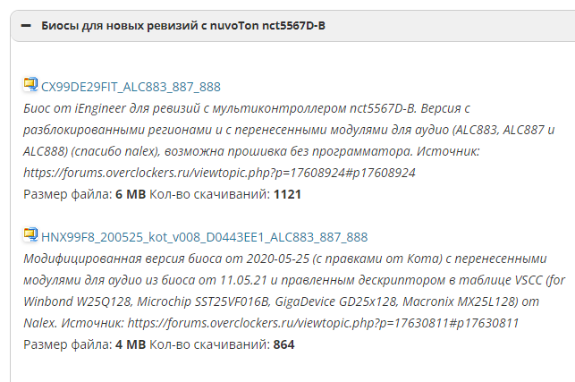 CX99DE29FIT_ALC883_887_888 Биос от iEngineer для новых ревизий с мультиконтроллером nct5567D-B. Версия с разблокированными регионами и с перенесенными модулями для аудио (ALC883, ALC887 и ALC888) (спасибо nalex), возможна прошивка без программатора