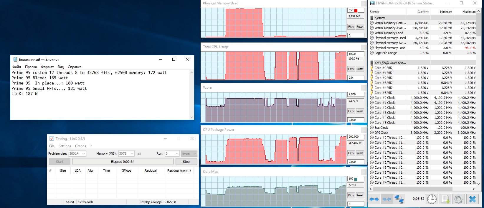 Это сказки, все E5-2600 упираются в ограничение в ЦПУ по ваттам и выше не идут... ЛИНКС выжимает потолок, а прайм 95 выжимает потолок только при кастомных настройках... а кто больше ватт выжмет надо смотреть на разгонных ЦПУ 1600 серии