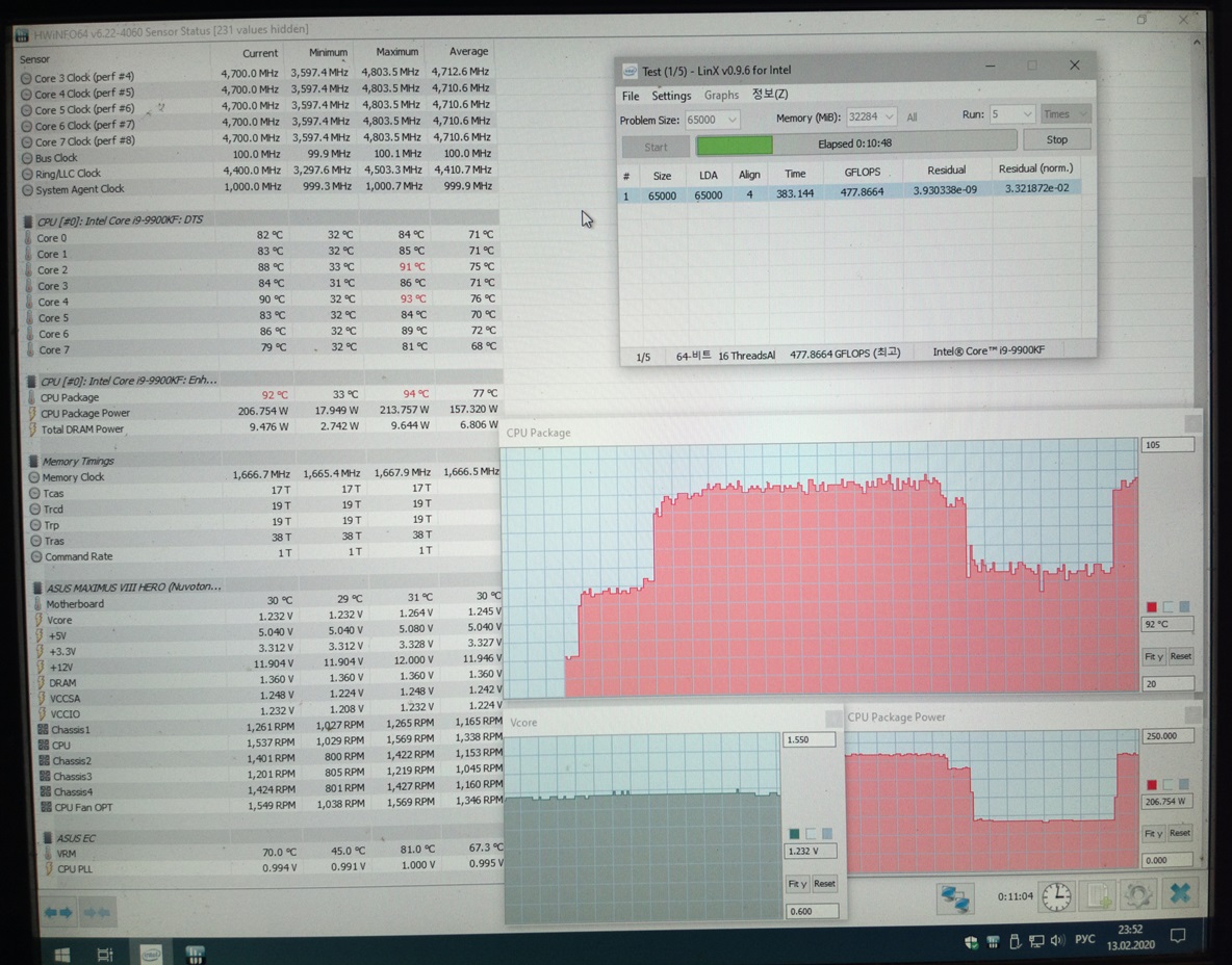 Микрокод B8, 4800, AVX offset -1, в нагрузке 1.232-1.264. На втором проходе картинка застыла.