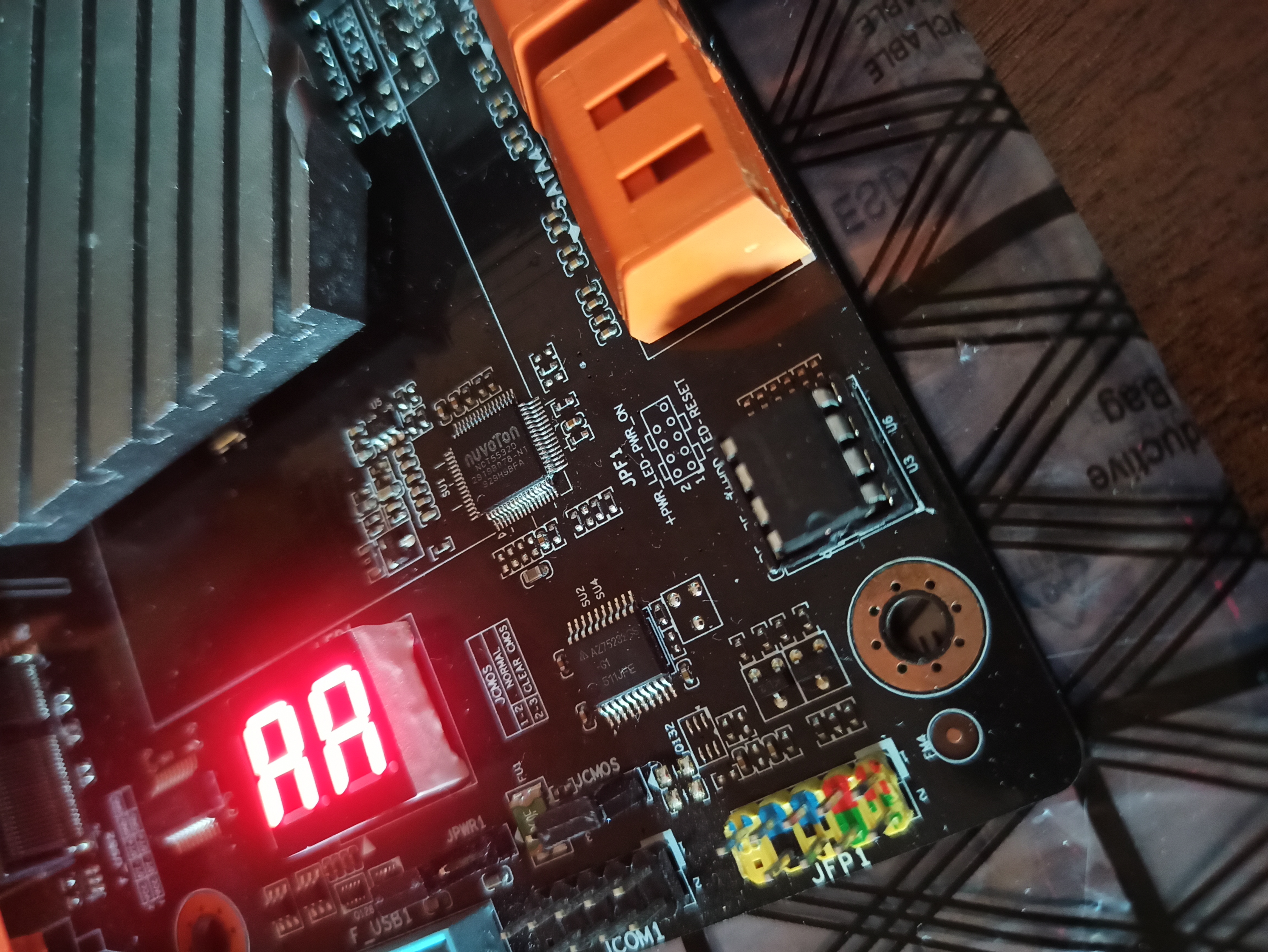 Вот мать сам и чип биоса, маркировка WINBOND W25Q128FVIQ, удобно конечно съёмный чип, в случае чего не надо всю мать вытаскивать с корпуса и прищепку цеплять, радиатор от чипсета отвинчивать.