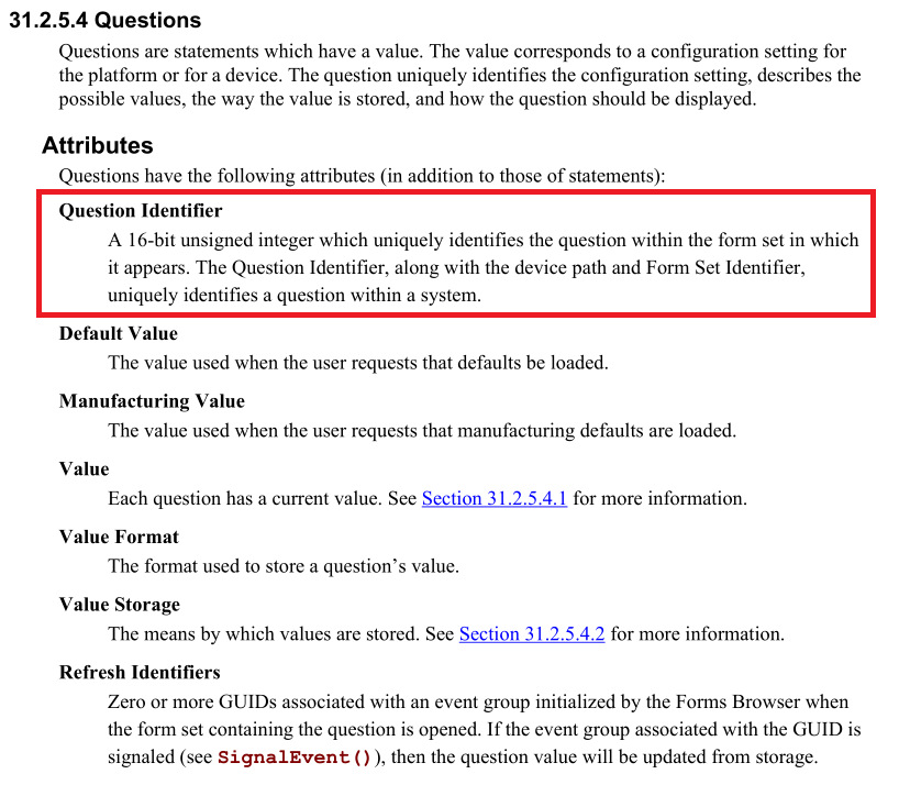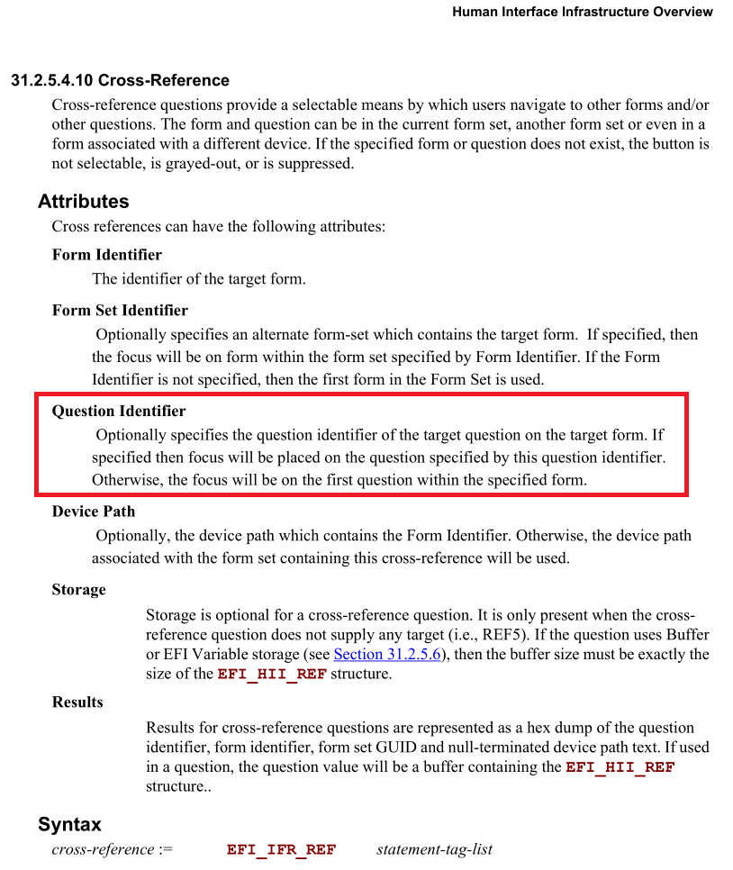 CodeRush Спасибо. Понял, что это не переменные, а просто ссылки. Нашел исходные переменные. Доработаю на этот предмет на досуге Universal IFR Extractor. А как писать в переменную не Var Store: Setup? setup_var из GRUB ведь не подойдет? P.S. Я наконец-то автоматизировал вытаскивание меню из Phoenix SecureCore Tiano. Там оказался все тот же IFR, но Universal IFR Extractor чуть исправить пришлось.