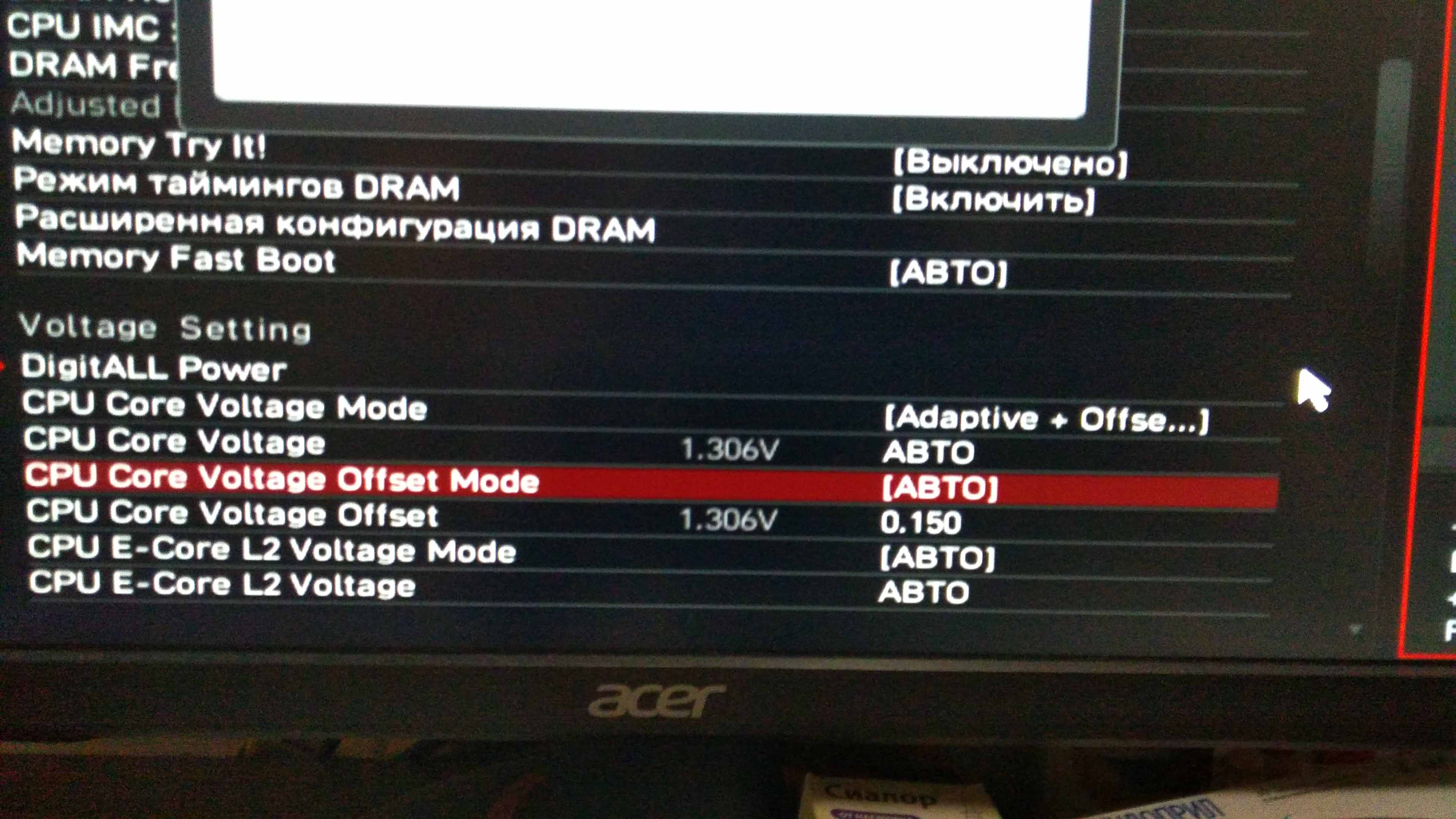 Спасибо за ответ, а в настройки CPU Core Voltage Offset Mode оставить "авто" или выбрать + или- ? А ниже я поставил в настройки CPU Core Voltage Offset 0.150