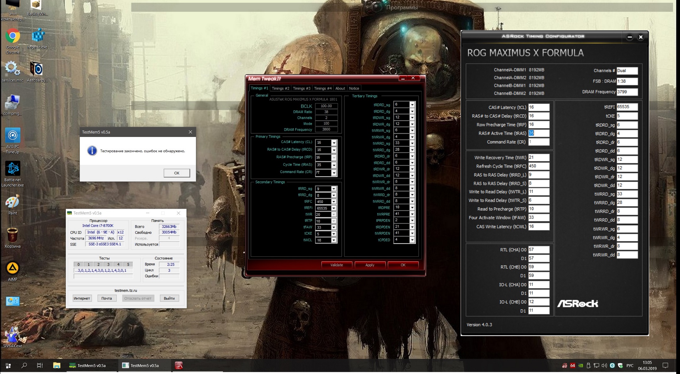 technikuswd кстати благодарю за картинки сейчас тоже поджал как у тебя на скрине третички..Но вылезла 1 ошибка поднял до 34 16 16 15 но все равно вылазиет..думаю где перебрал не подскажешь? а по тесту где запор можно вычислить(всмысле на каком тесте ошибка)? что где не так и где копать?или тут только повышением напруги на imc?пробовал понижать core pll voltage до 1.23 не стартует ...только с 1.256 память проходит пост при загрузке компа.И еще вопрос ты asrock timing configurator на asus запустил?или это на таичи разгон не совсем понял.На таичи память гораздо лучше гнать чем на формуле x тем более если xi .