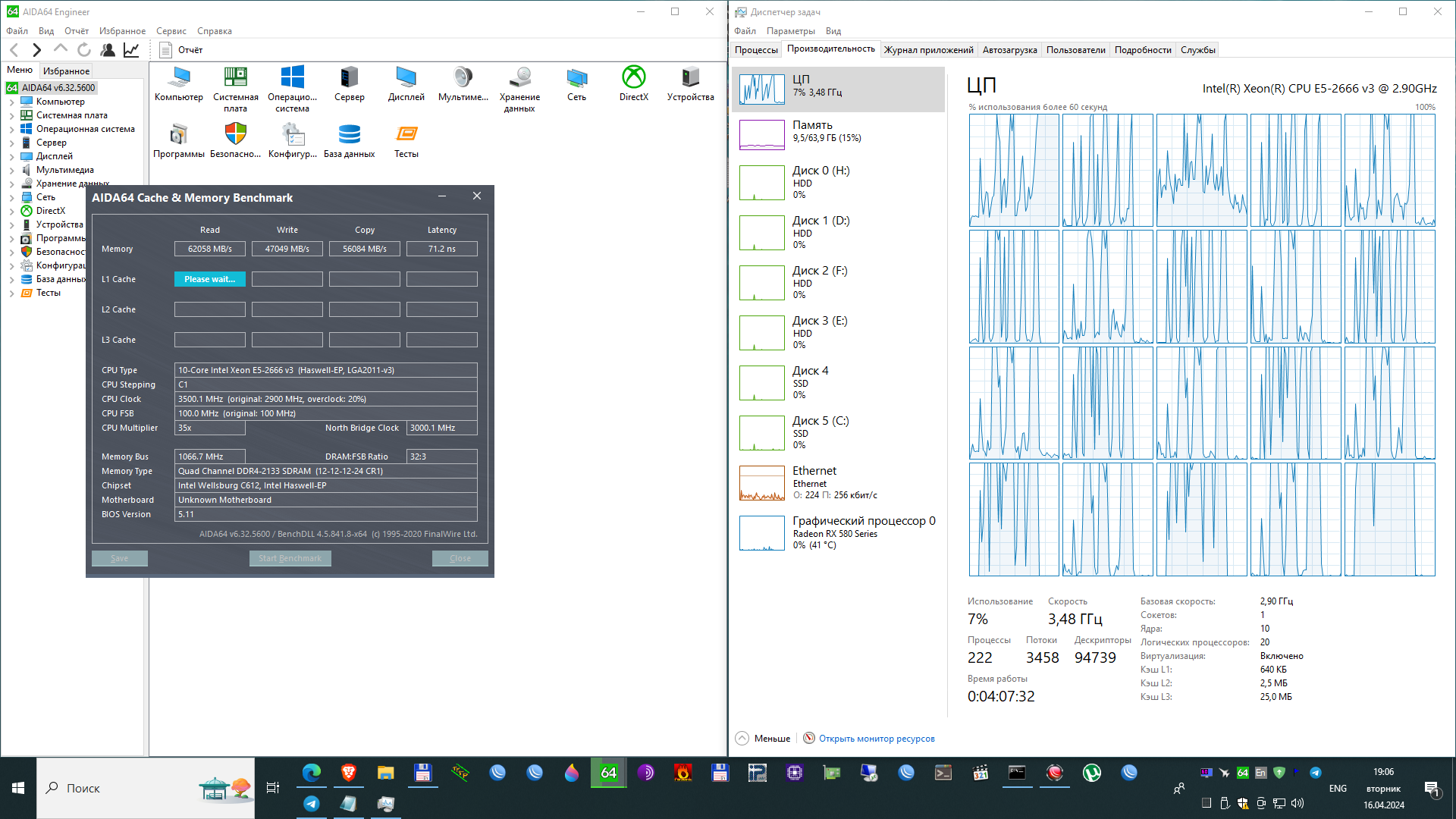 во время теста аида все ядра задействоаны