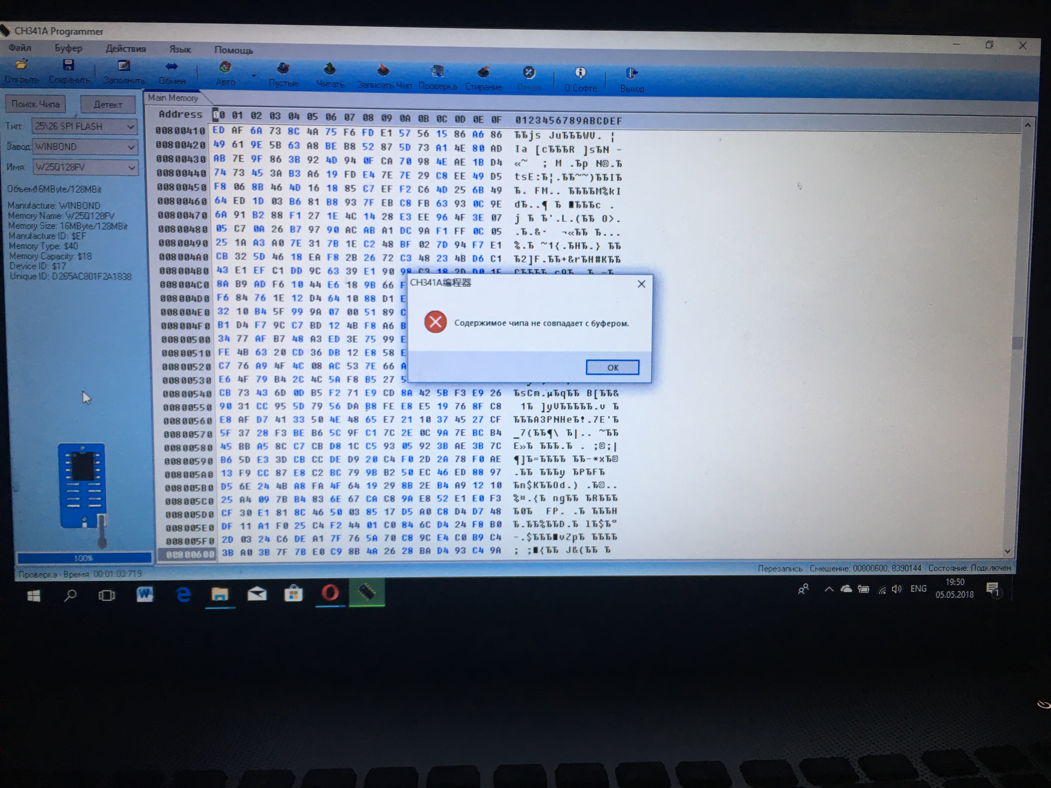 Заливаю биос на чип, после заливки нажимаю проверку, на 50% проверки выходит это Пробовал 1.3 и 1,29 версии программы, одна и та же проблема